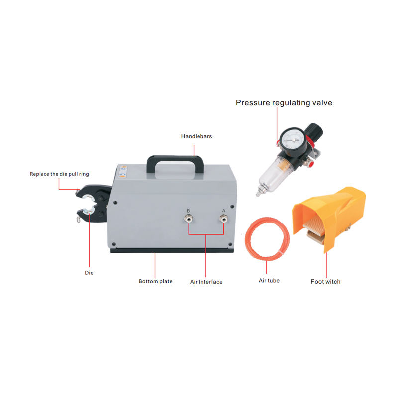 เครื่องจีบขั้วต่อสายไฟแบบพกพาแบบนิวแมติกบริสุทธิ์หกเหลี่ยม