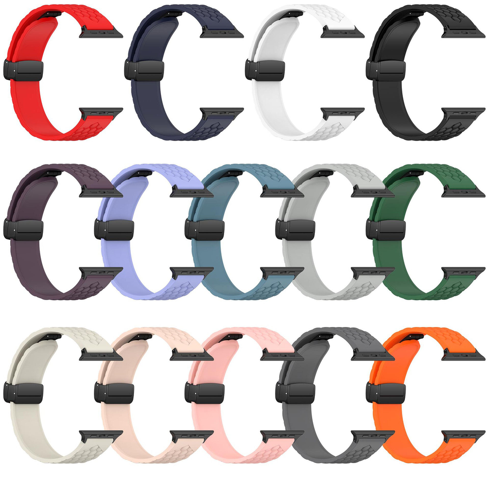 สายนาฬิกาซิลิโคนแบบตะขอแม่เหล็กแบบพับได้หกเหลี่ยมสำหรับ Apple Watch Series 10 9 42มม. 46มม. 41มม. 45มม. เปลี่ยนสายได้
