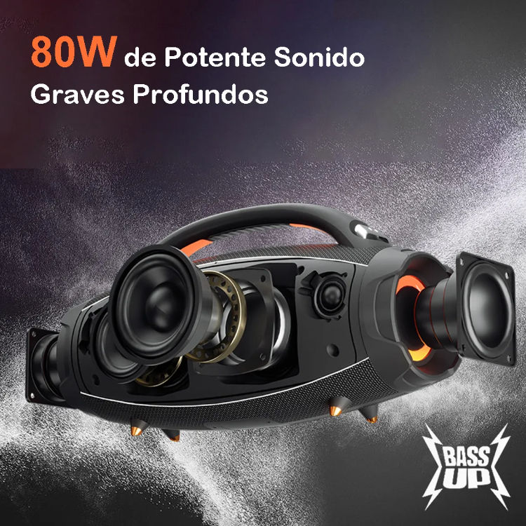 Heysong Bang Portable for Speaker 80W | IPX4 Waterproof | Built-In Powerbank & RGB LED Effects