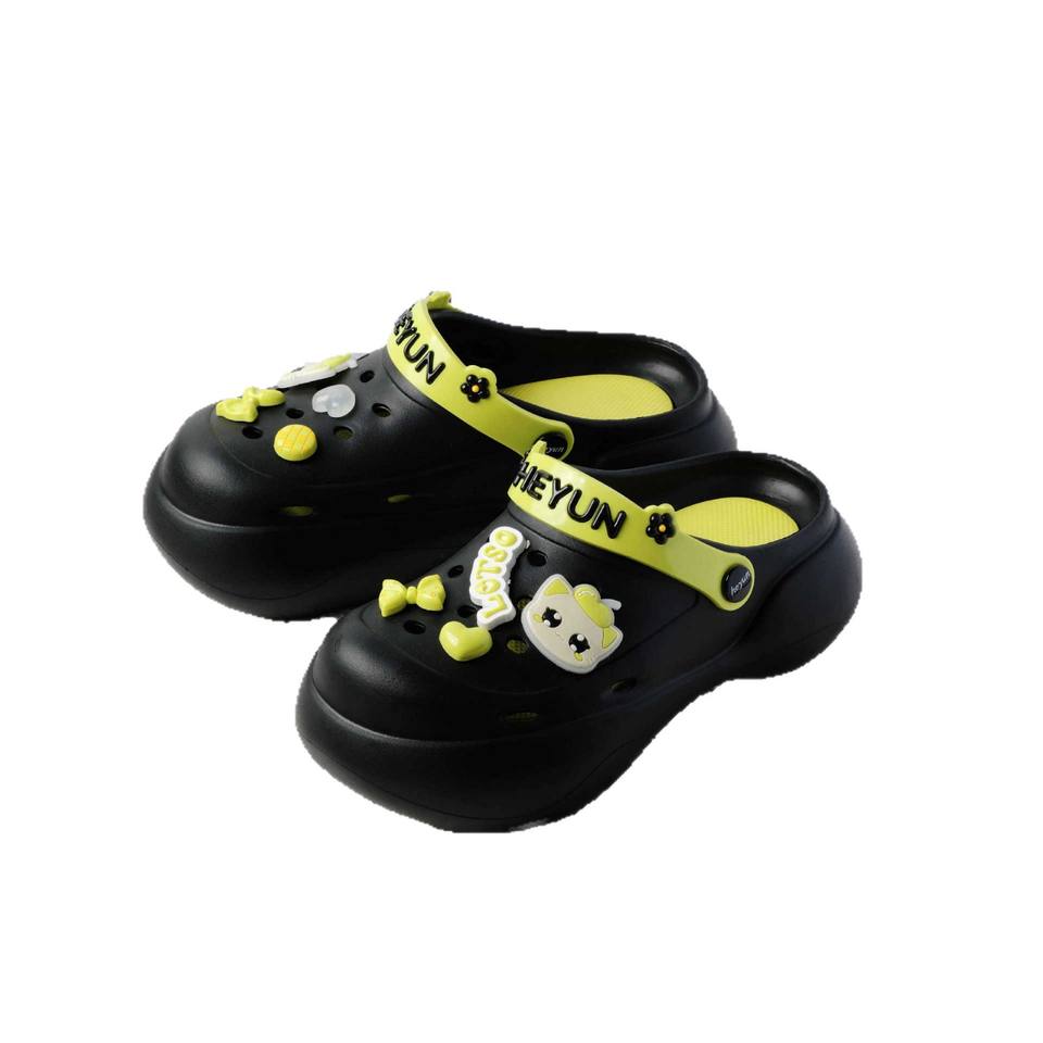 เฮยุน คร็อกส์รองเท้าแตะส้นเตี้ยสำหรับผู้หญิงส้นหนา 3 ซม. สีขาวสีชมพูดีไซน์แมวฤดูร้อนรองเท้าลำลองชายหาด