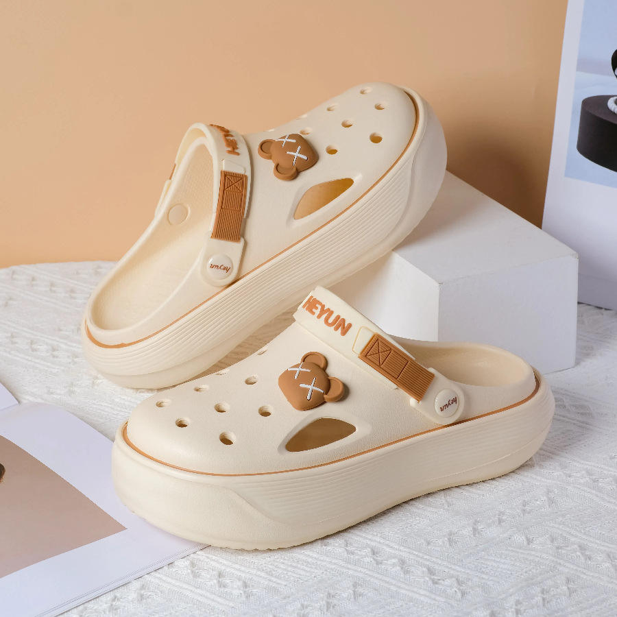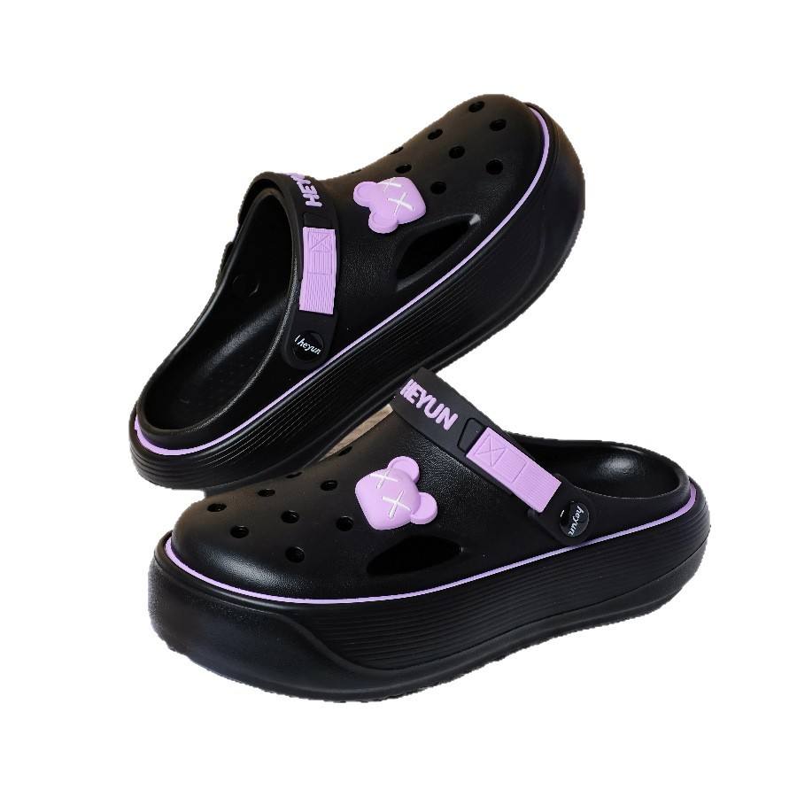 เฮยุน คิดส์ คล็อกส์รองเท้าแตะแบบเปิดนิ้วเท้ากันลื่นพื้นหนารองเท้าสำหรับฤดูร้อนสำหรับเด็กผู้หญิงขนาด 7-14 สีดำสีชมพูสีเบจสีเทาสีขาว