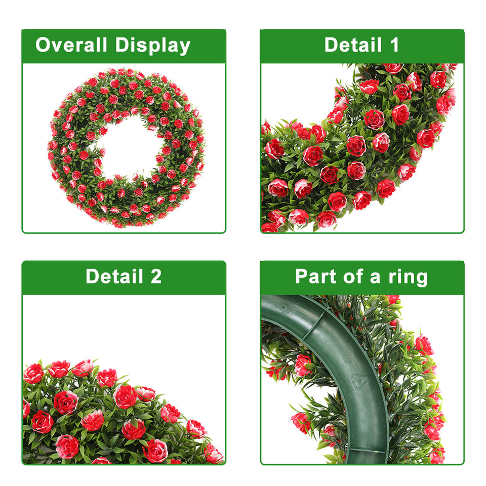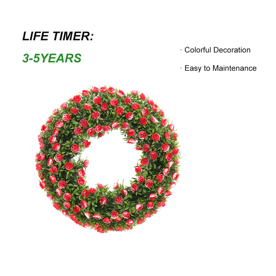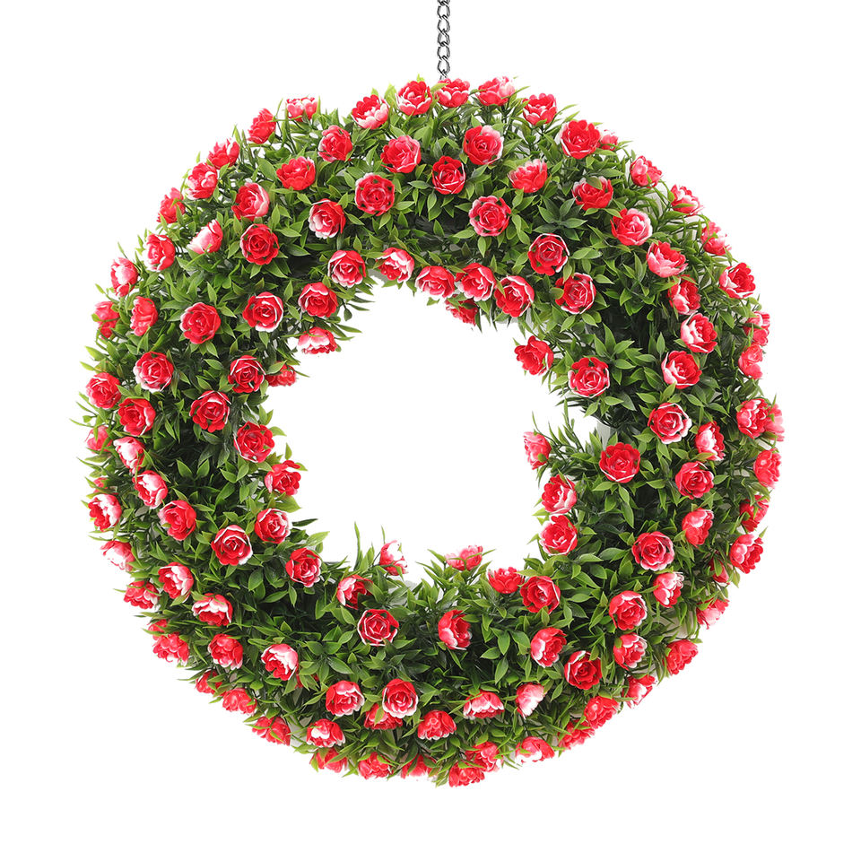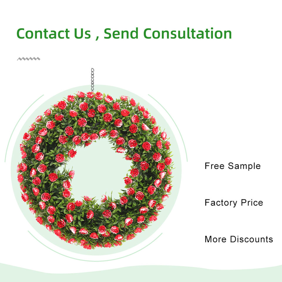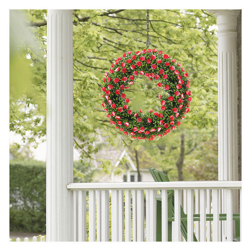 Hh-76พวงมาลัยเทียมดอกกุหลาบสีแดงใบไผ่ PE แขวนได้สำหรับงานวันคริสต์มาสฮาโลวีนงานจบการศึกษายาวนาน