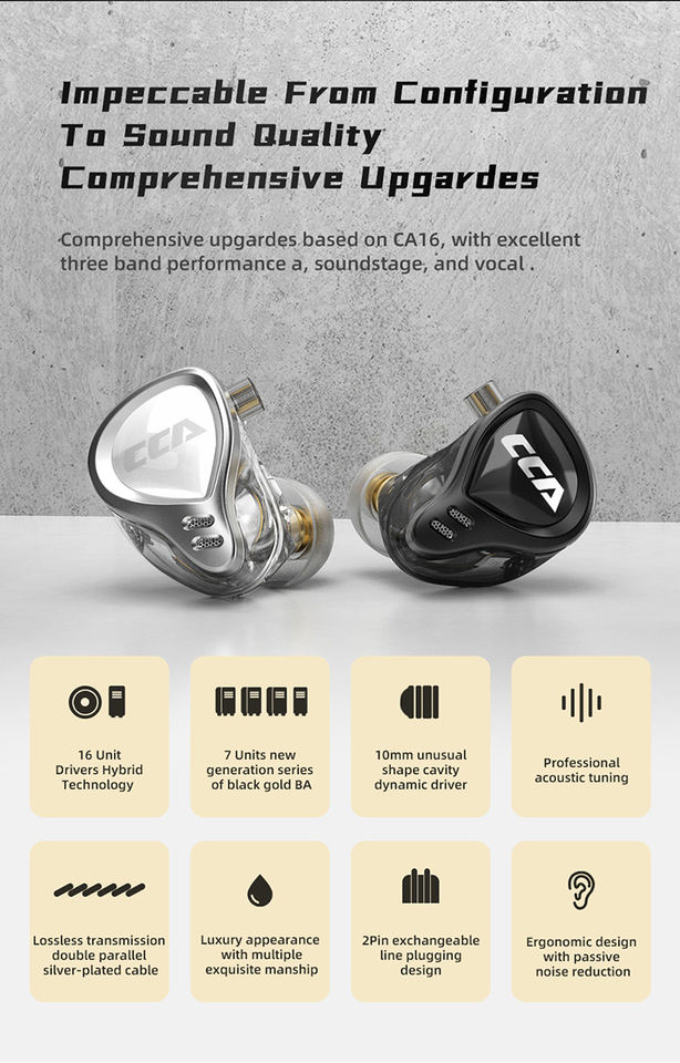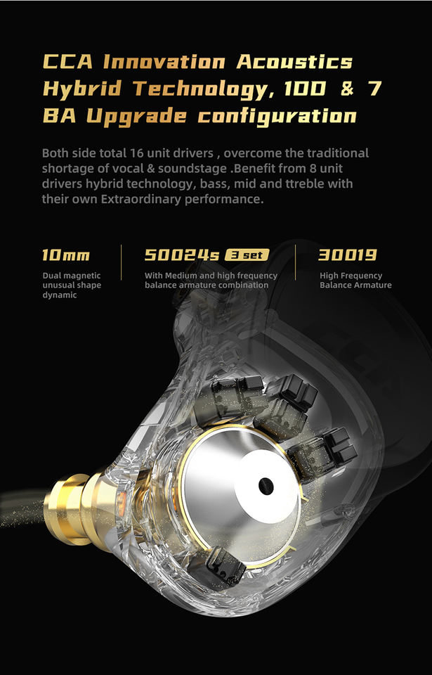 หูฟังไฮไฟ CCA CA16 PRO แบบไฮบริด ใส่ในหู ดีไซน์แบบคล้องหู ตัดเสียงรบกวน ให้เสียงระดับพรีเมียม