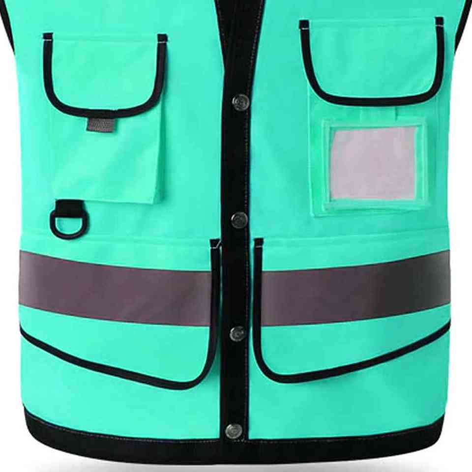 เสื้อกั๊กก่อสร้างแบบกำหนดเองคุณภาพสูงของผู้ชายเสื้อกั๊กแบบหลายช่องสะท้อนแสงสูงป้องกันไฟฟ้าสถิตย์ปลอดภัยในการมองเห็นได้ชัดเจน