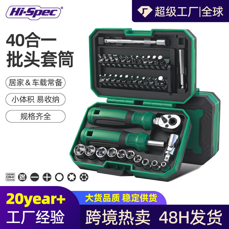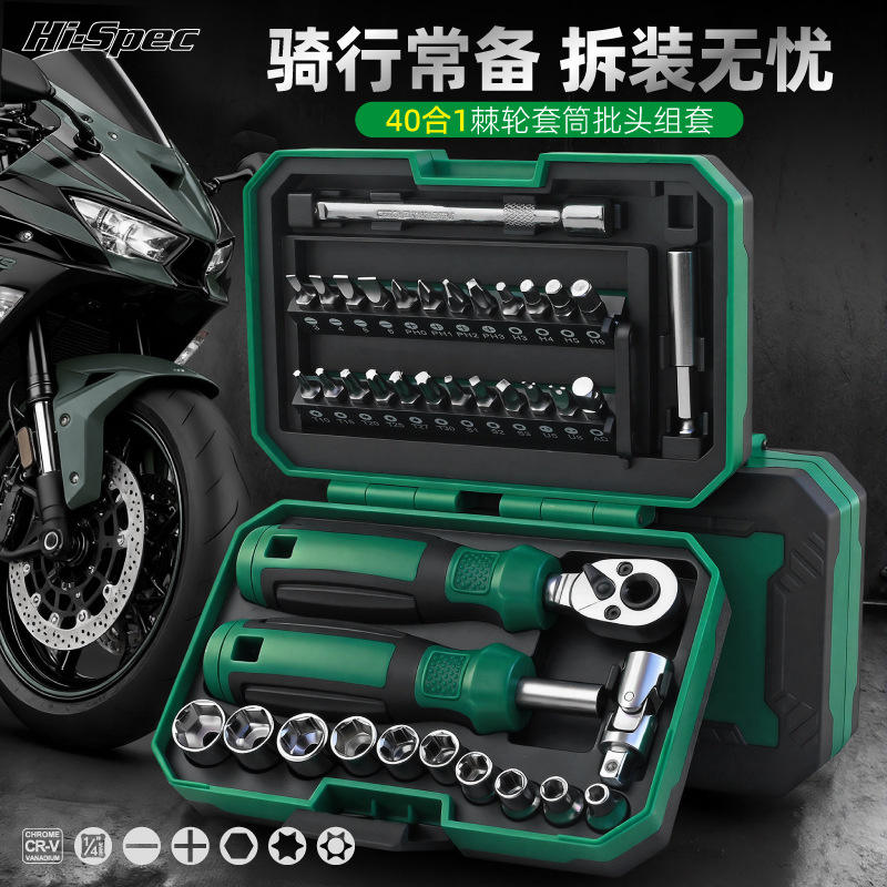 ชุดเครื่องมือไขควงพร้อมด้ามขันแบบ Ratchet 40 ชิ้น Hi-Spec สำหรับซ่อมมอเตอร์ไซค์ ผลิตจากเหล็กโครเมียมวาเนเดียม