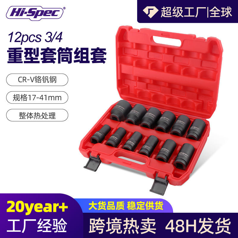 ชุดประแจบล็อกไฮสเปค 3/4 นิ้ว หัวหกเหลี่ยม สีดำ โครเมียม วาเนเดียม สตีล เกรดอุตสาหกรรม ชุดเครื่องมือซ่อมรถยนต์ 12 ชิ้น