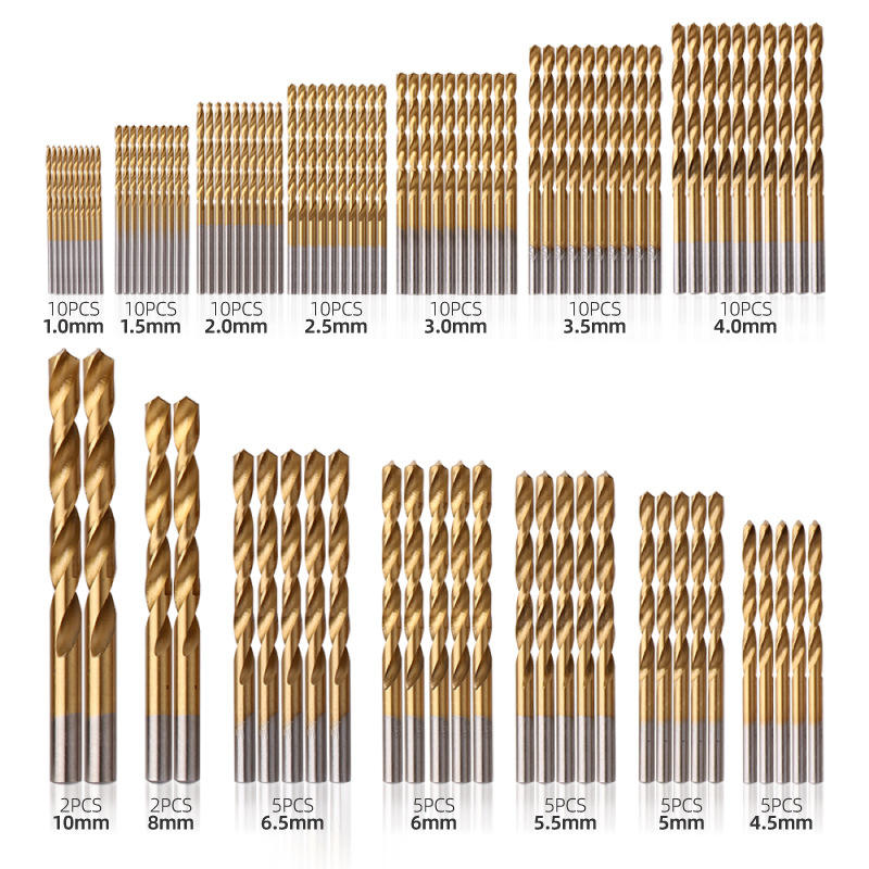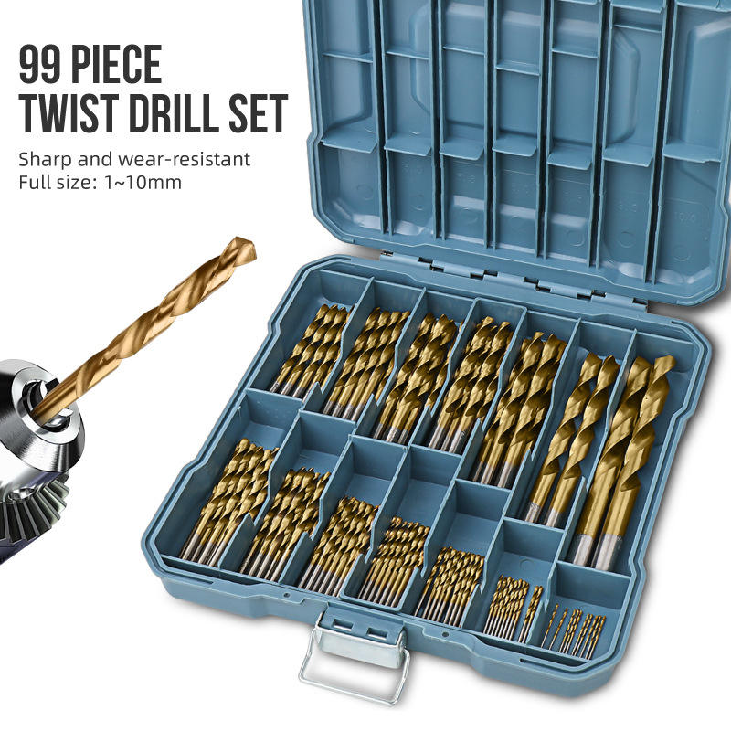 ชุดดอกสว่านไฮสเปค 99 ชิ้น ขนาด 1-10 มม. แบบเมตริก ความยาวมาตรฐาน เคลือบ TiCN สำหรับโลหะที่ไม่ใช่เหล็ก