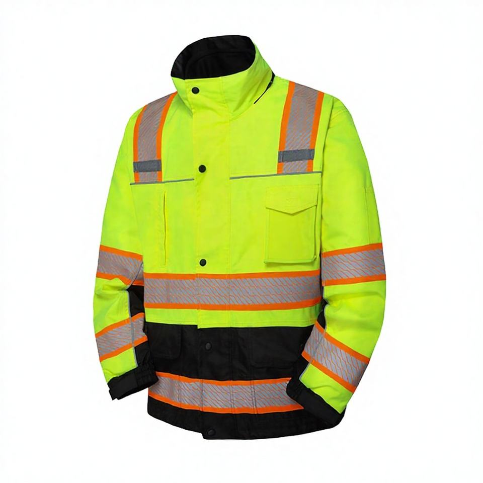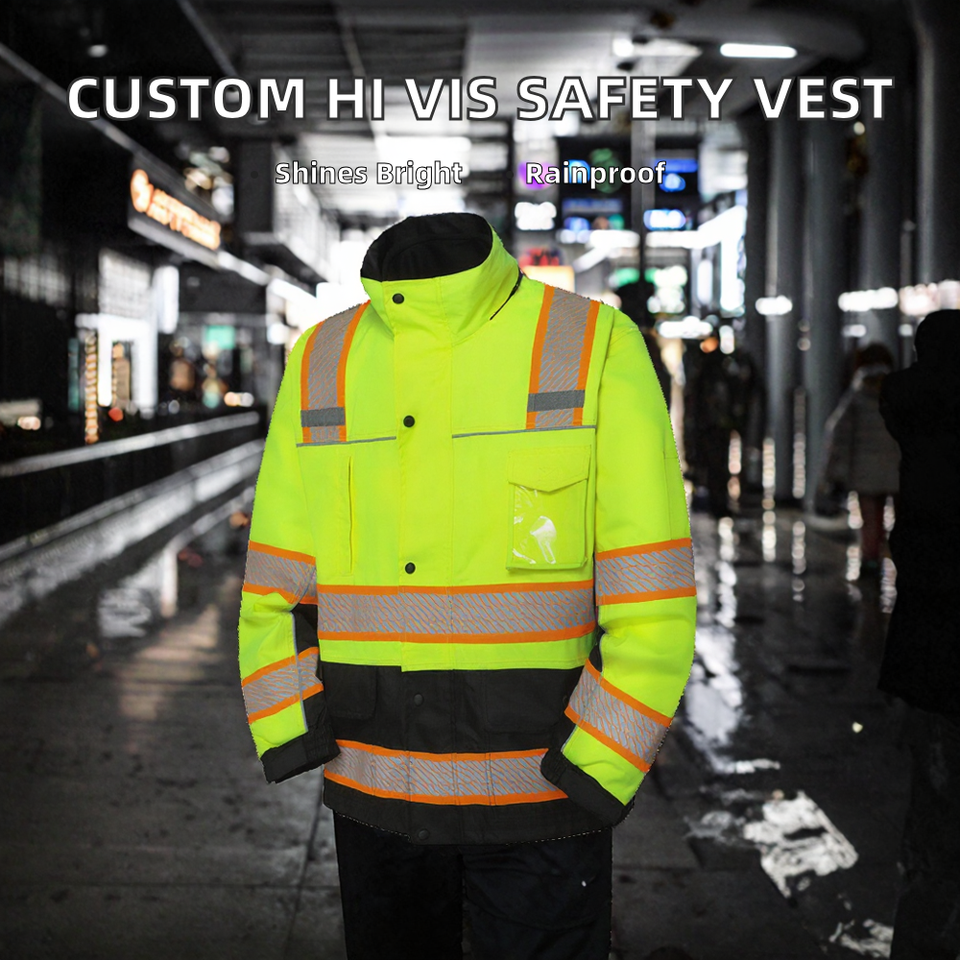 เสื้อกั๊กนิรภัยแบบกันน้ำ ANSI Class 2 สีเหลืองสะท้อนแสง ผลิตตามสั่ง สำหรับโรงงาน คลังสินค้า และงานก่อสร้าง