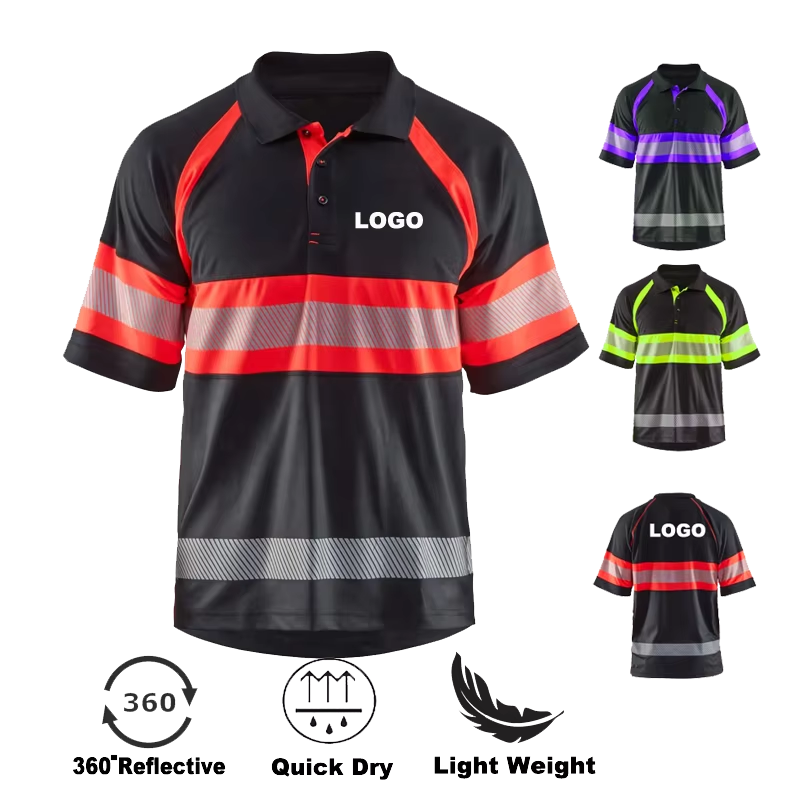 เสื้อเชิ้ตทำงานนิรภัยแบบสวมใส่สบาย ระบายอากาศได้ดี แห้งเร็ว ทรงเข้ารูป มาตรฐาน ANSI Class 3 แขนสั้น ผ้าถัก สไตล์ลำลองสมาร์ท พร้อมโลโก้และไฟ LED