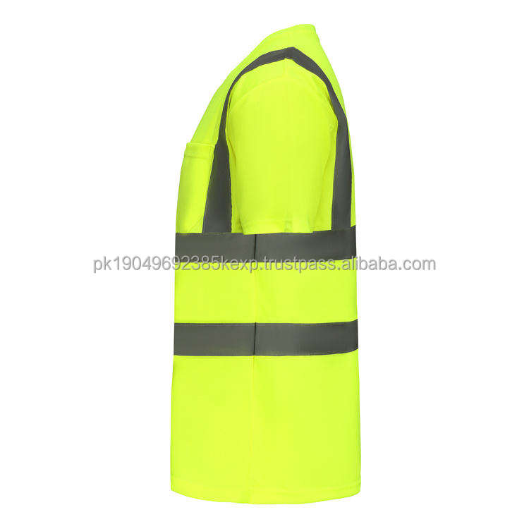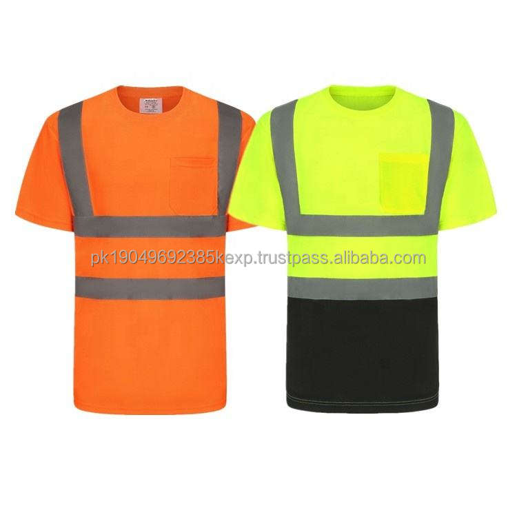 เสื้อผ้าทำงานสะท้อนแสงแบบระบายอากาศสำหรับผู้ชาย เสื้อยืดเรืองแสงแห้งเร็ว ปรับแต่งโลโก้ได้ ชุดยูนิฟอร์มทำงานสำหรับผู้ชาย