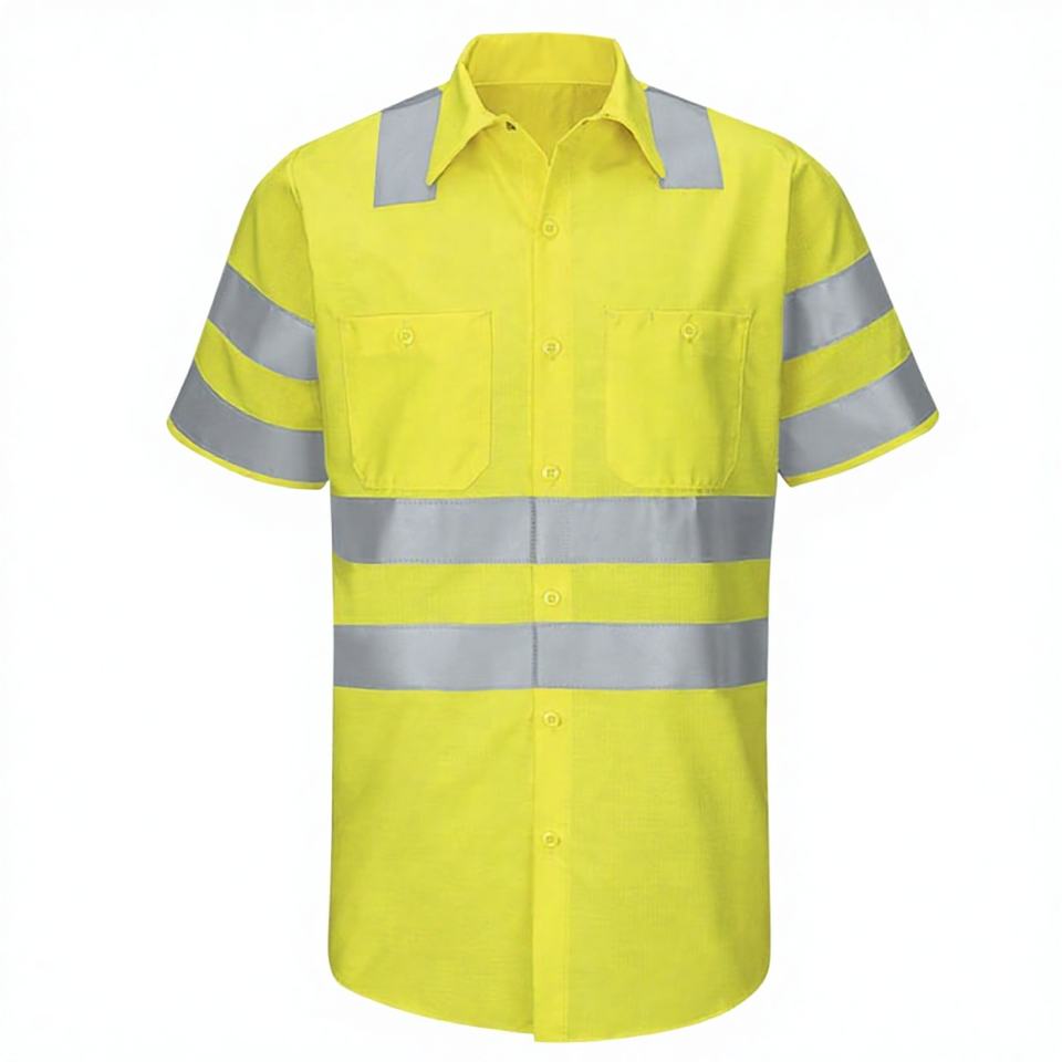 Hi Vis Cotton Unisex Reflective Safety ANSI Class 2 Best Quality Work Shirt with Reflective Tape and Customized Logo