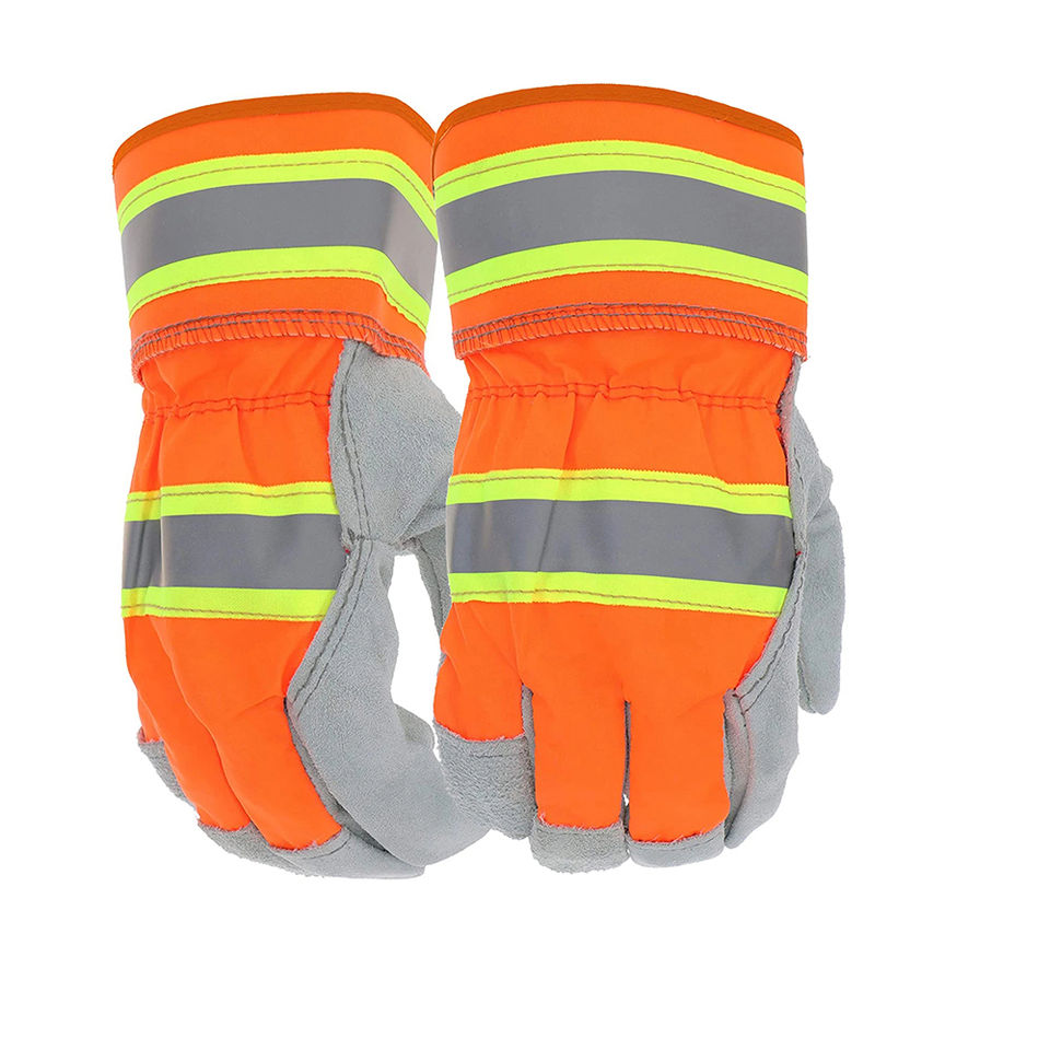 ถุงมือหนังวัวแบบ Hi Vis ป้องกันอันตราย ระบายอากาศได้ดี และทนไฟ ปรับแต่งสีและขนาดได้ บริการ OEM