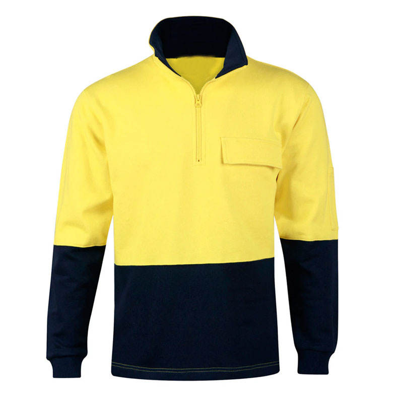 Hi VIS เสื้อสเวตเชิ้ตคอกลม S-4XL จัมเปอร์กันความร้อนสำหรับทำงานสะท้อนแสงมองเห็นได้ชัดเจน