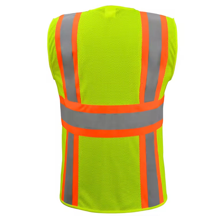 เสื้อกั๊กเซฟตี้ถักสะท้อนแสงแบบ Hi-Vis เสื้อกั๊กใส่ทำงานแบบมีกระเป๋าหลายช่องเสื้อกั๊กป้องกันสูงดีไซน์ดัง