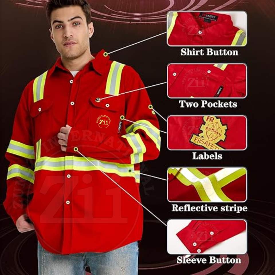 เสื้อเชิ้ตแขนยาวสะท้อนแสงสำหรับงานเชื่อม ป้องกันความร้อนระดับ 300-500 องศาเซลเซียส ผ้าริปสต็อป ทนทานต่อการฉีกขาด