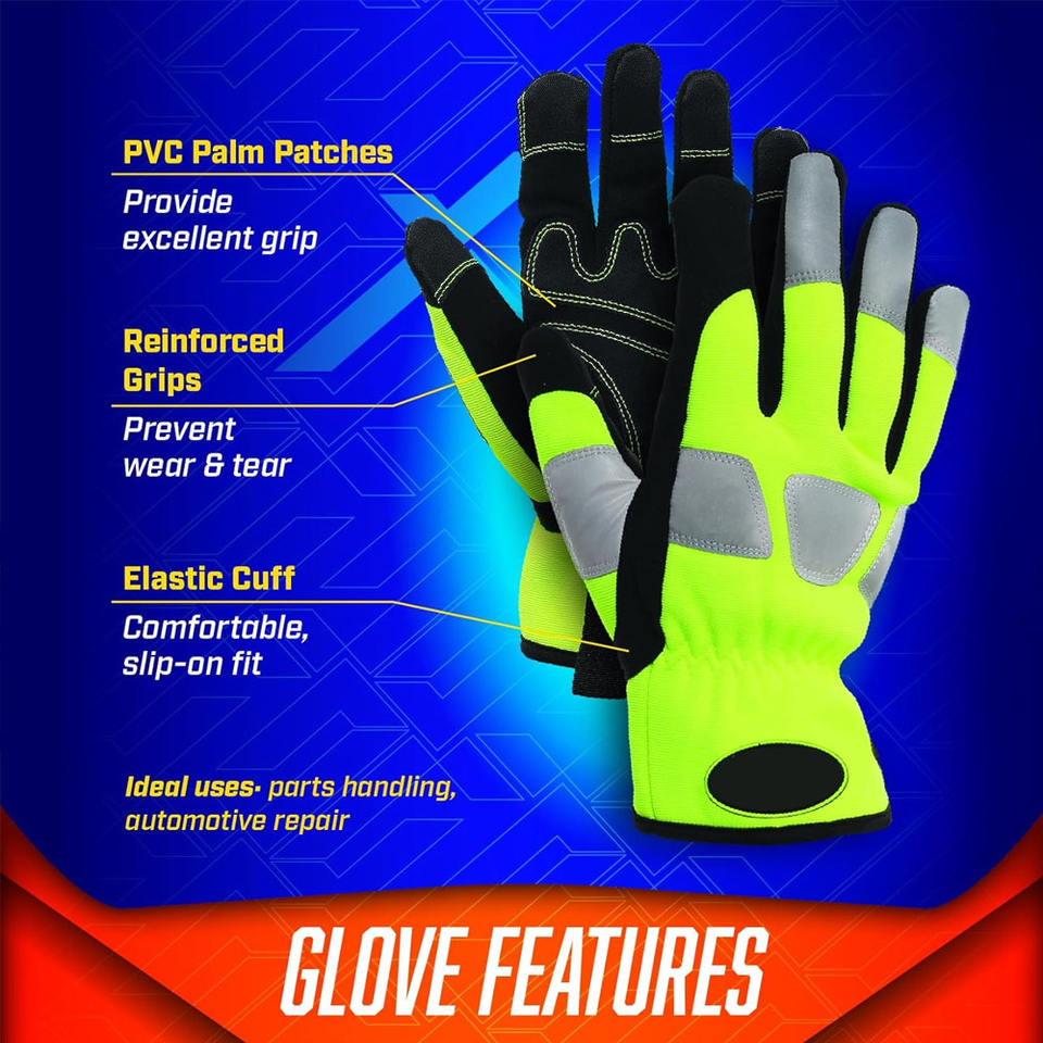 ถุงมือช่าง Hi VIS แบบยืดหยุ่นข้อมือเปิดข้อมือถุงมือสำหรับงานหนักถุงมือนิรภัย LED สะท้อนแสงสูงสำหรับไฟจราจรใหม่
