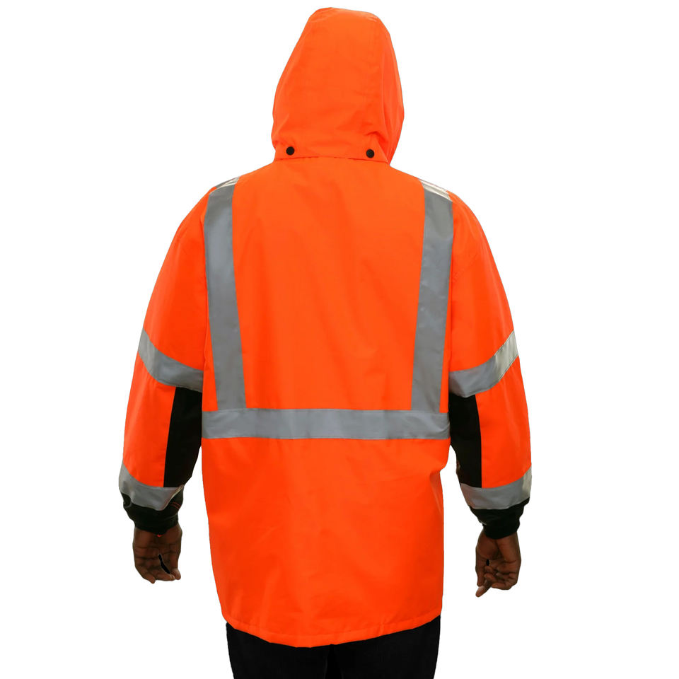 เสื้อแจ็คเก็ตนิรภัยสำหรับผู้ชายแบบสะท้อนแสง ทนทาน กันน้ำ ไฟ LED โพลีเอสเตอร์ มาตรฐาน ANSI ระดับ 2 ปรับแต่งได้