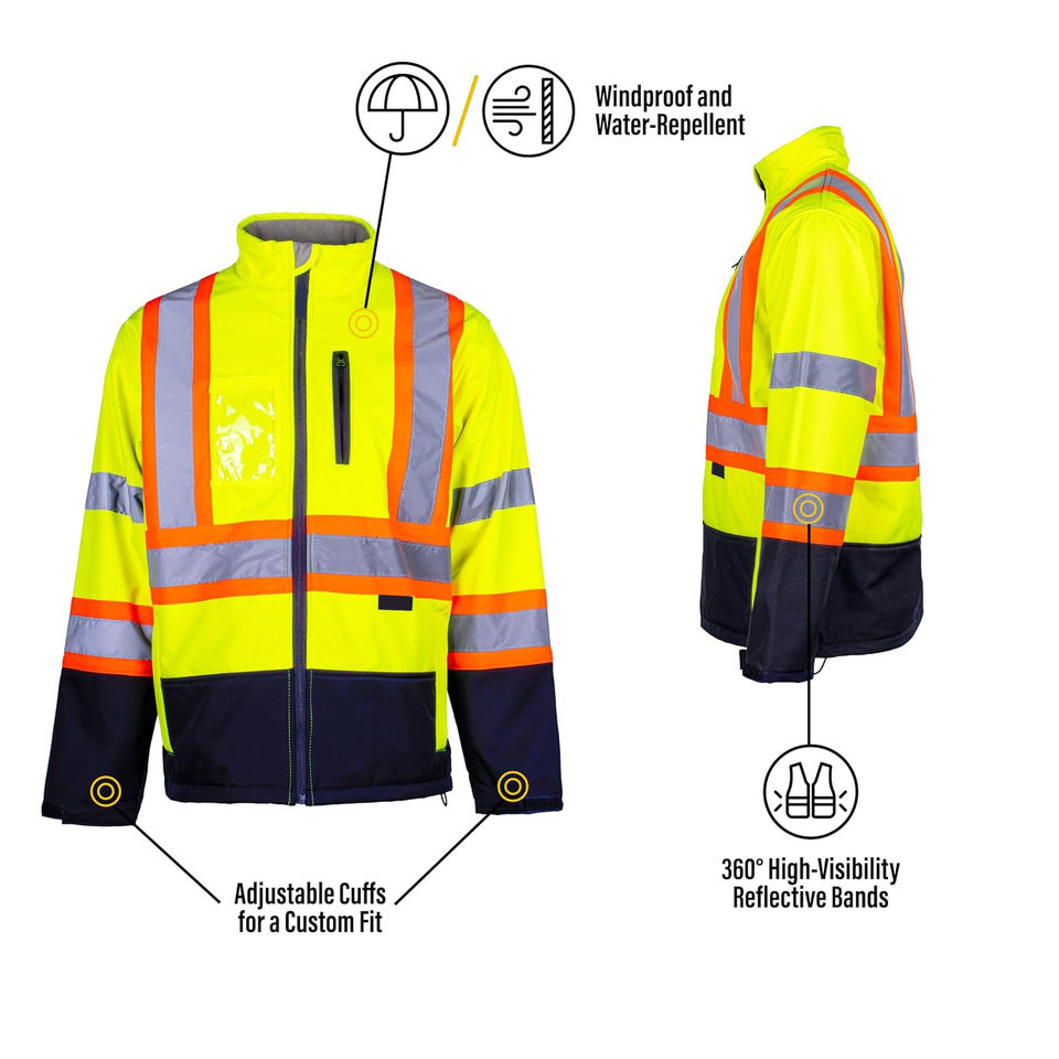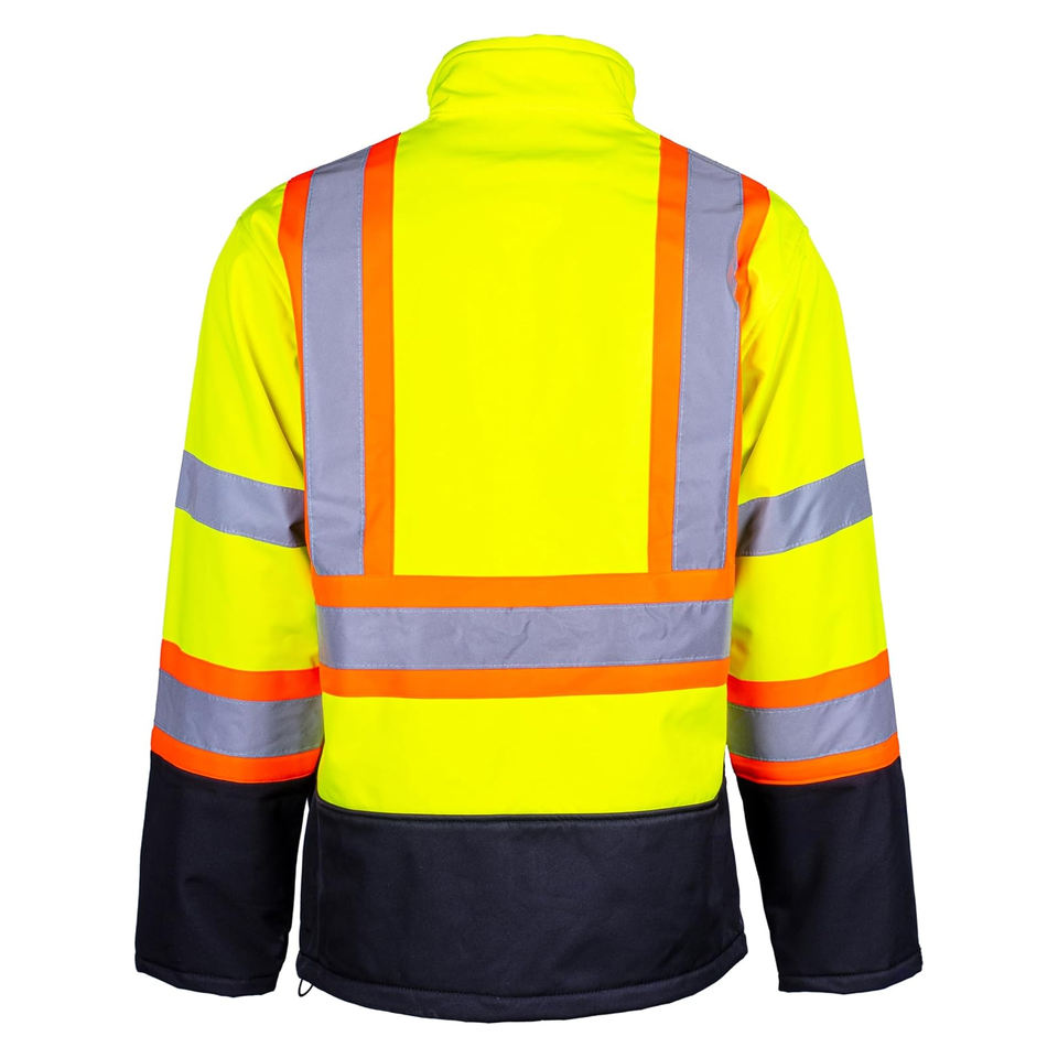 เสื้อแจ็กเก็ตซอฟต์เชลล์แบบสร้างแสงสะท้อนแสง Hi VIS แจ็กเก็ตกันน้ำกำหนดได้เอง