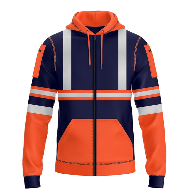 เสื้อแจ็กเก็ตมีฮู้ดเพื่อความปลอดภัยในการทำงานสะท้อนแสงปรับแต่งได้พร้อมโลโก้
