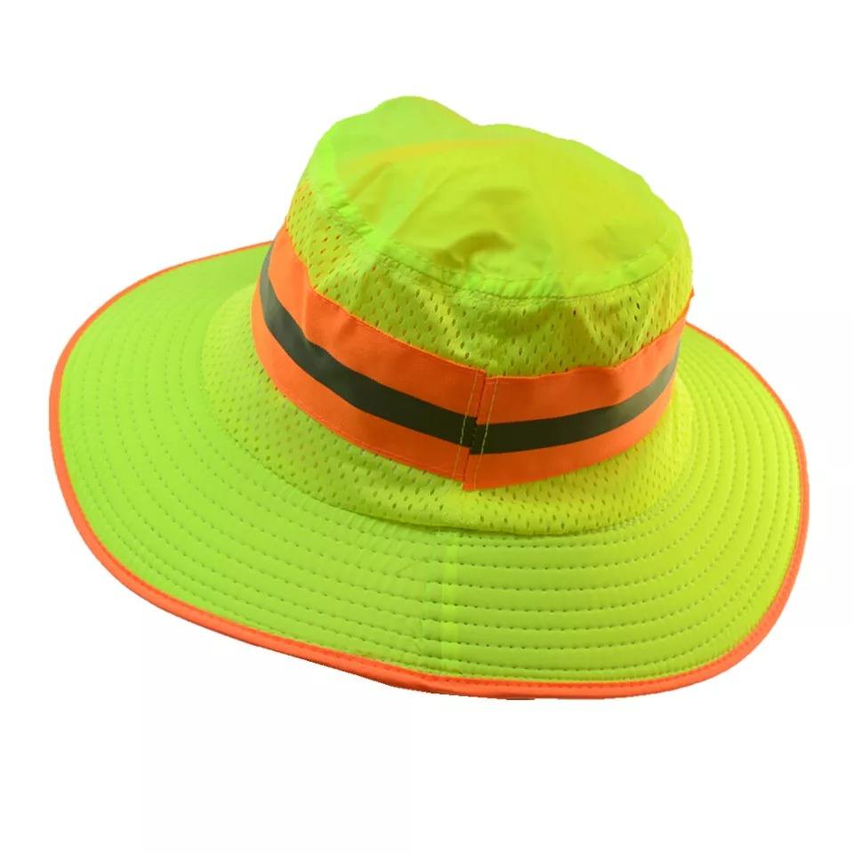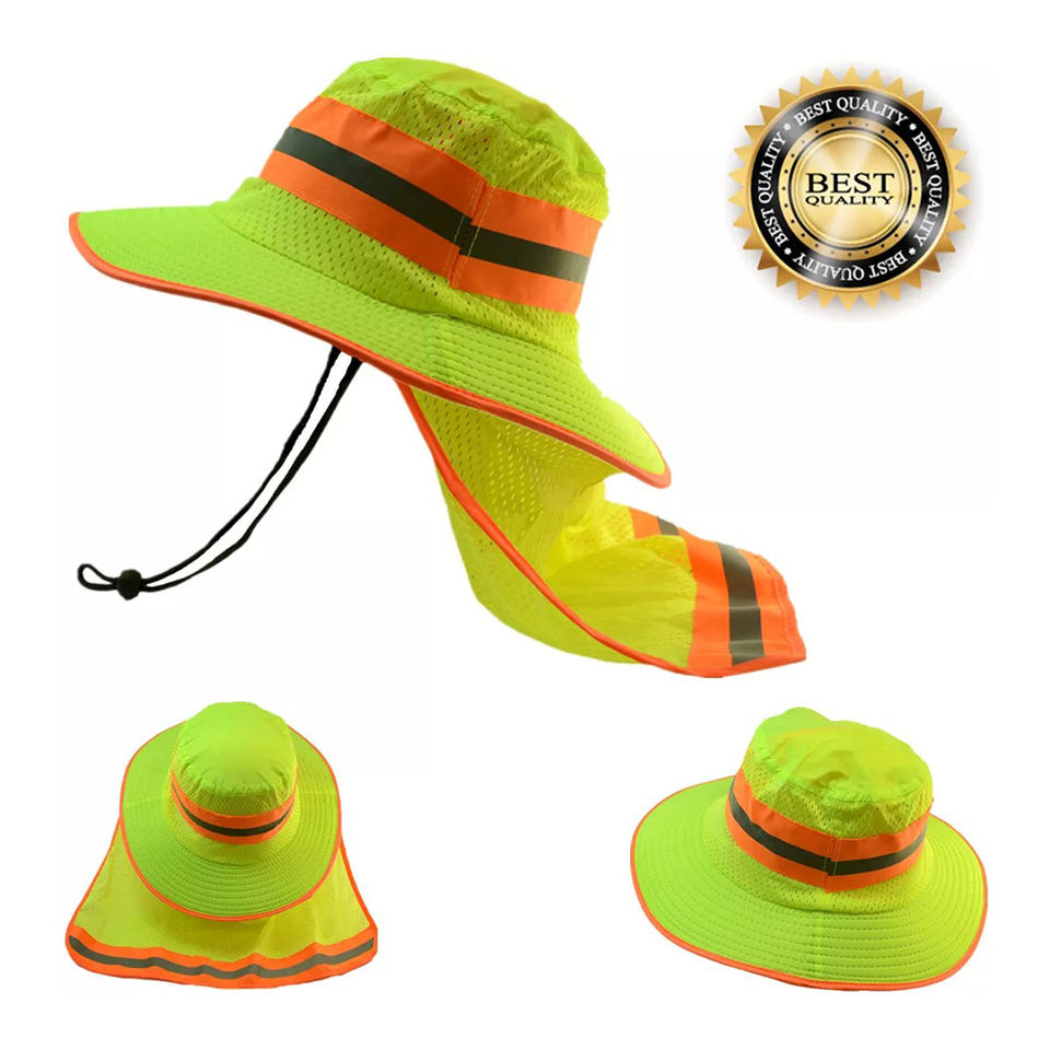 หมวกทรงถังระบายอากาศสีเขียวมีฝาปิดที่คอสำหรับทำงานสะท้อนแสง