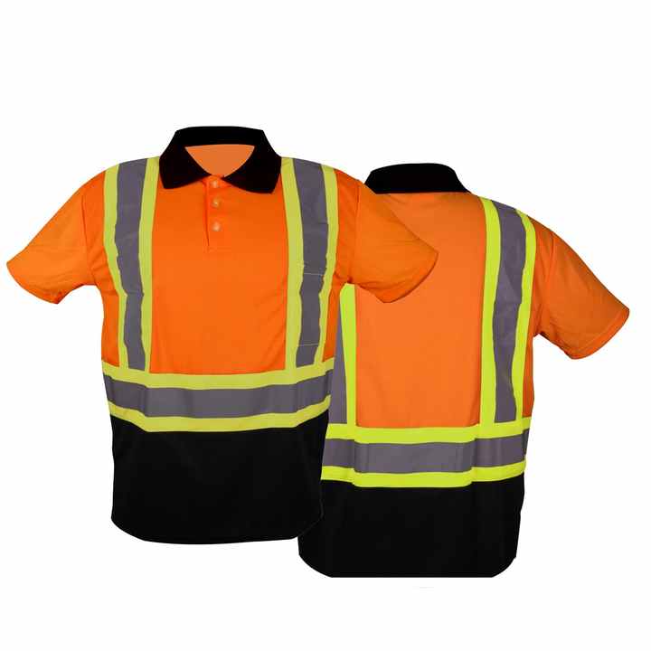 เสื้อโปโลสะท้อนแสงสำหรับงานนิรภัยสำหรับผู้ชาย เสื้อผ้าทำงานป้องกันการมองเห็นสูงแบบเรืองแสง