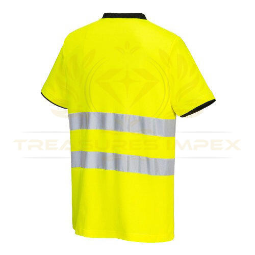 เสื้อยืดแขนสั้น Hi-Vis เสื้อยืดความปลอดภัยสีเหลืองและสีดำปานกลาง40 + UPF rated 98% ป้องกันรังสียูวีวัสดุผ้าฝ้าย