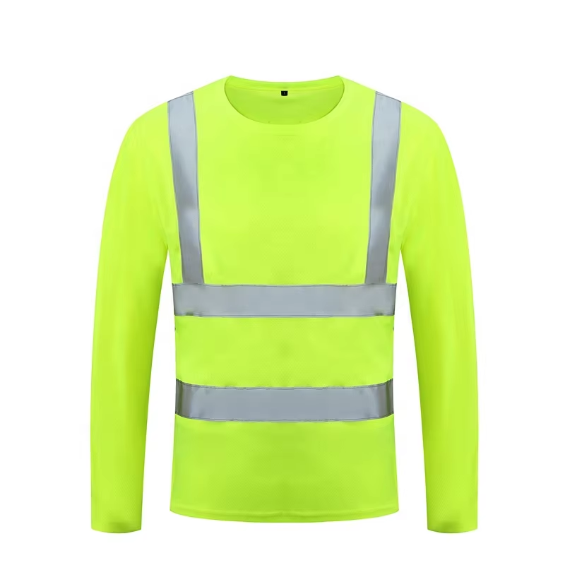 เสื้อโปโลแขนยาวสีเหลืองสะท้อนแสง ผ้าโพลีเอสเตอร์ สำหรับทำงาน เสื้อผ้าทำงานเพื่อความปลอดภัยสำหรับผู้ชาย