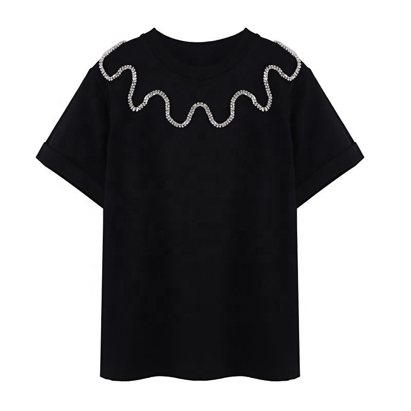 เสื้อยืดผู้ชายผ้าฝ้าย 100% ประดับเพชรเทียม ทรงหลวม ราคาคุ้มค่า ทนทาน