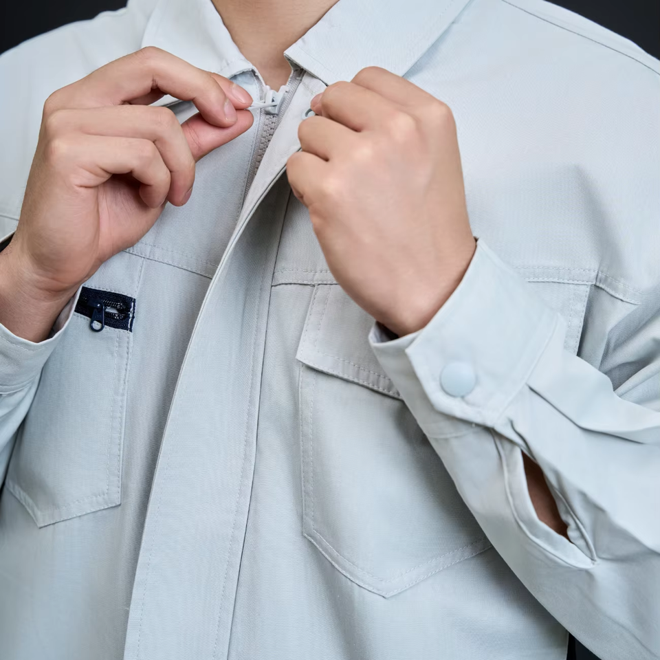 ชุดทำงานนิรภัยแขนยาวสีเทากรมท่า ผ้า TC สำหรับผู้หญิง ผลิตในเวียดนาม ยี่ห้อ FMF ทนทาน ระบายอากาศได้ดี สวมใส่สบาย มองเห็นได้ชัดเจน