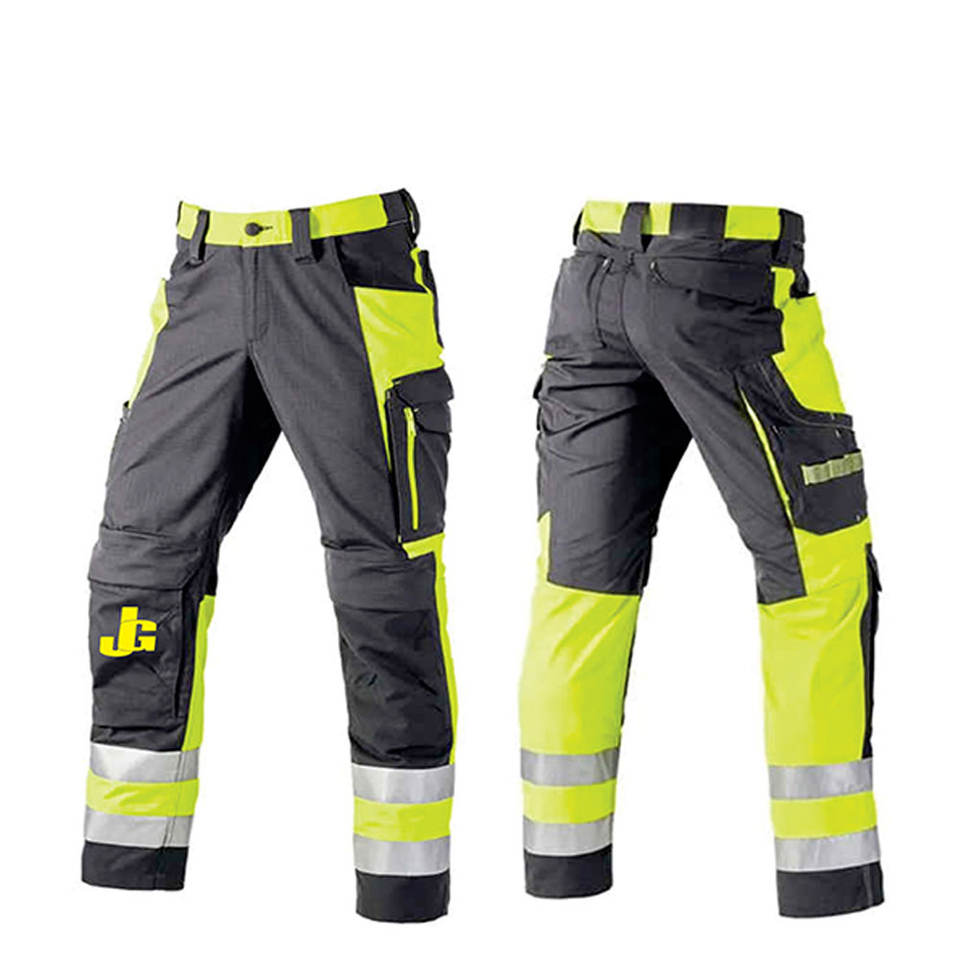 กางเกงเซฟตี้ผ้าคอตตอนระบายอากาศทนไฟเชื่อมไฟฟ้ามองเห็นได้ชัดเจนปรับแต่งได้