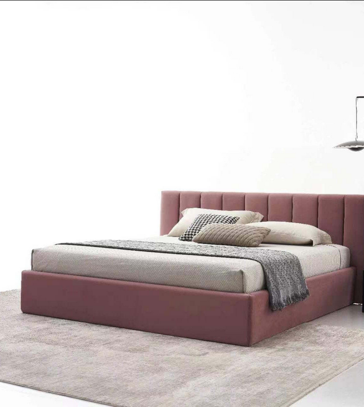 โครงเตียงไม้จริงหุ้มเบาะสไตล์มินิมอล คุณภาพสูง ขนาดควีนไซส์ ดีไซน์ยุโรป ตกแต่งแบบติดกระดุม เฟอร์นิเจอร์ห้องนอนนุ่มสบาย