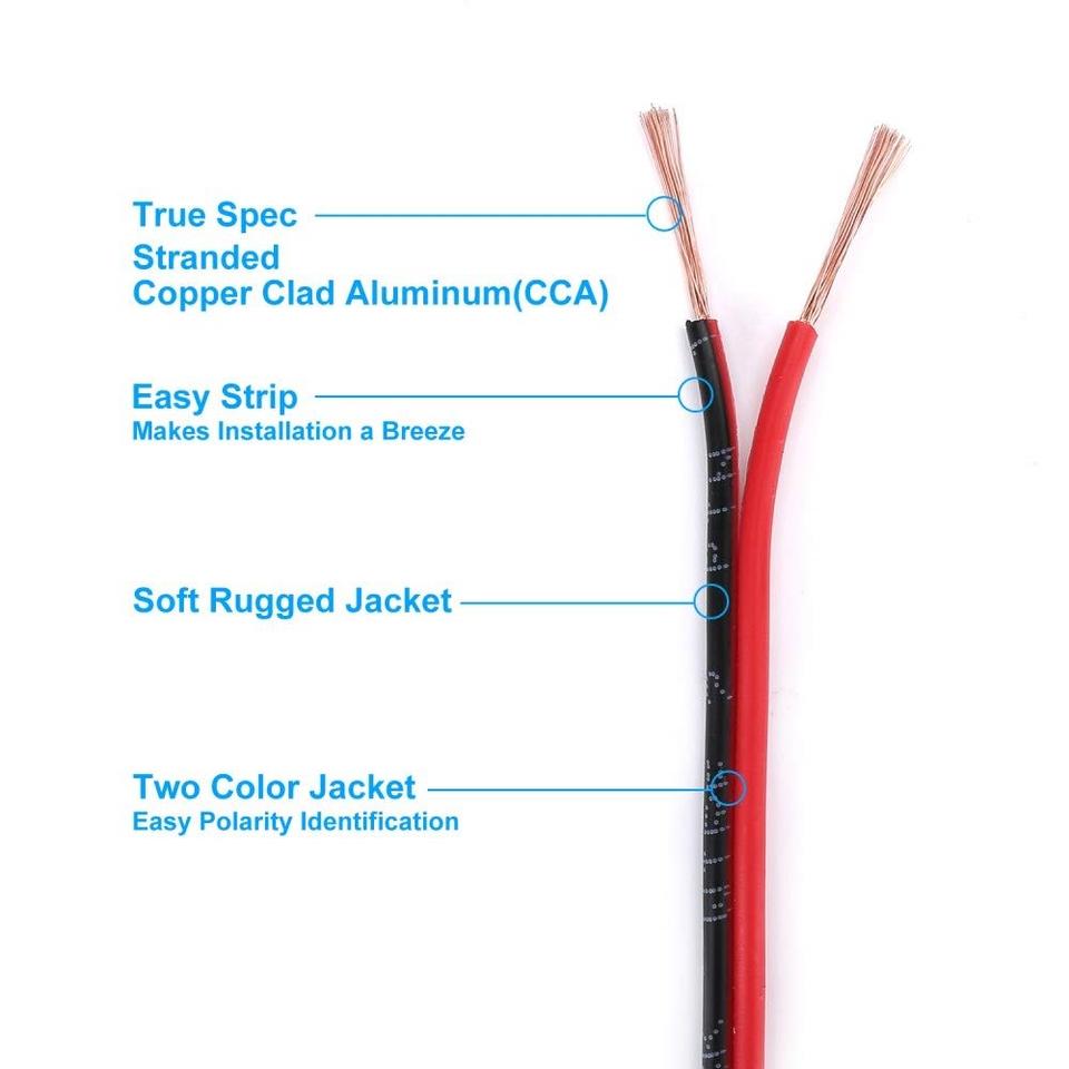 สายลำโพง HiFi สำหรับเสียงและวิดีโอ สีดำและสีแดง ขนาด 14 12 16 18 AWG ปลอกหุ้ม PVC มาตรฐาน CL2 CL3
