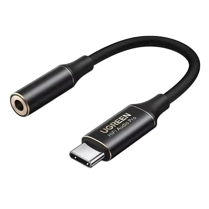 อะแดปเตอร์เสียง HIFI DAC ugreen USB C ถึง3.5MM Type C ไปยังช่องเสียบหูฟัง AUX อะแดปเตอร์ไนล่อนถักสำหรับ Samsung