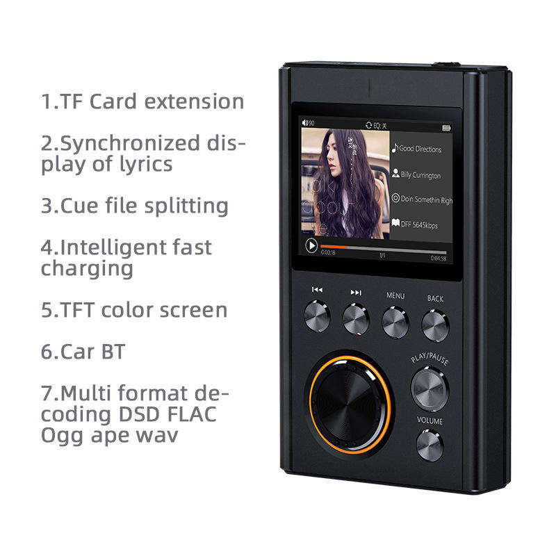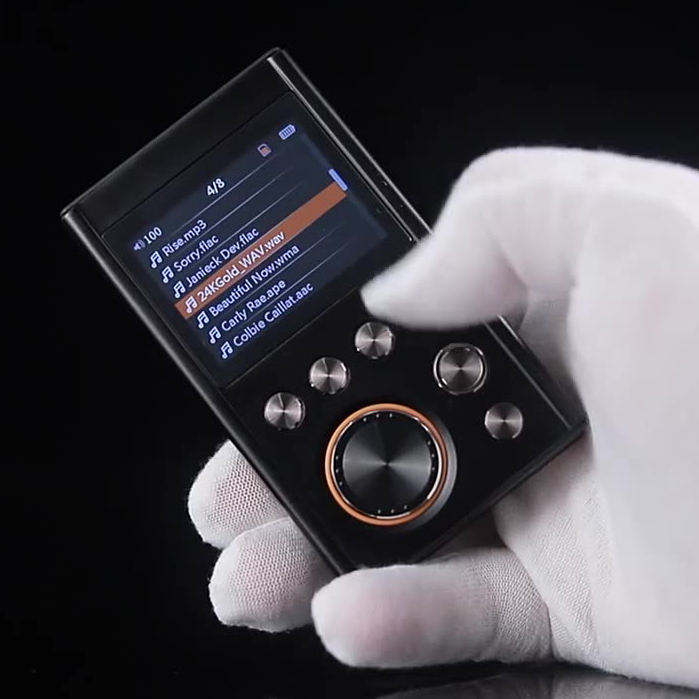 เครื่องเล่นเพลง MP3 แบบ HiFi Lossless ตัวเครื่องอะลูมิเนียมอัลลอย CNC รองรับการถอดรหัส DSD ปุ่มควบคุมแบบสัมผัส พร้อมแบตเตอรี่ใช้งานได้นานกว่า 20 ชั่วโมง