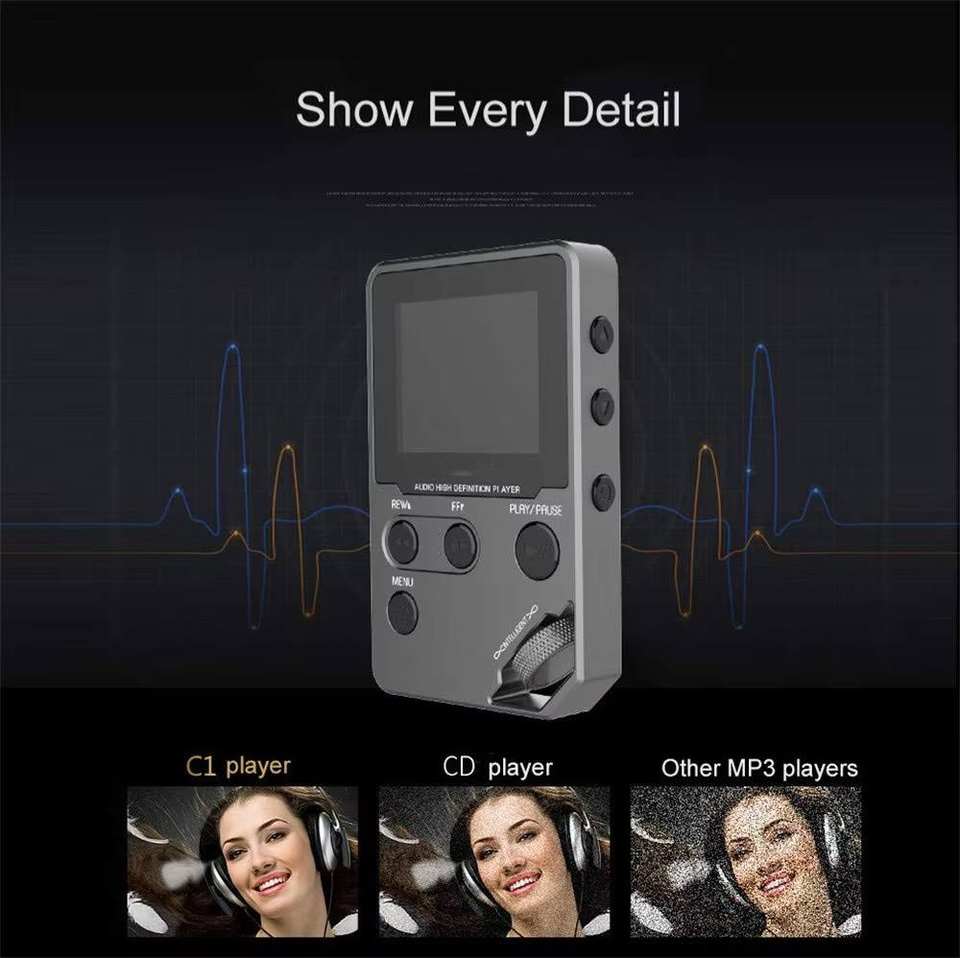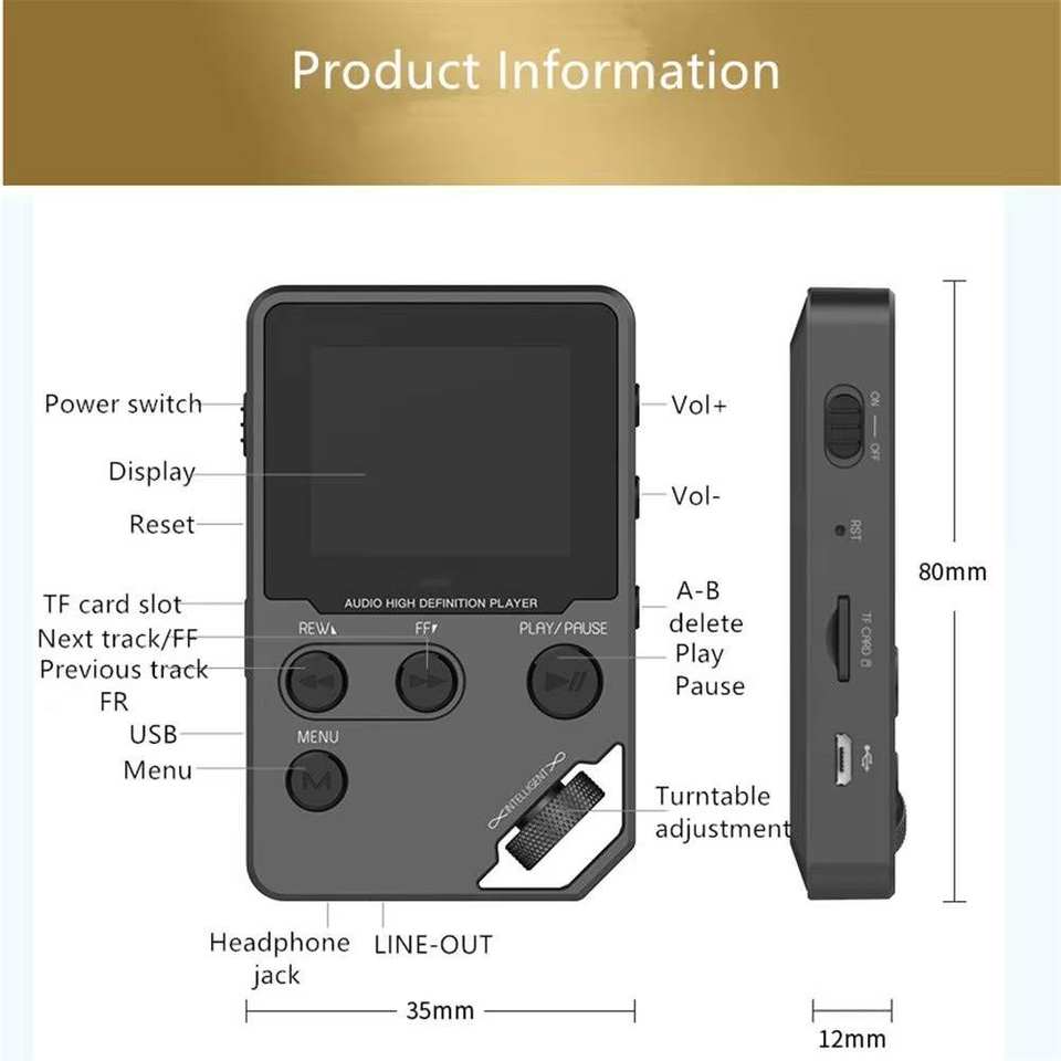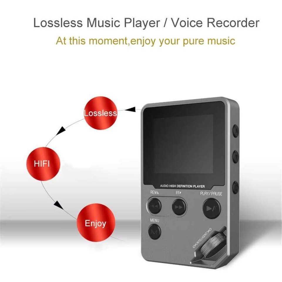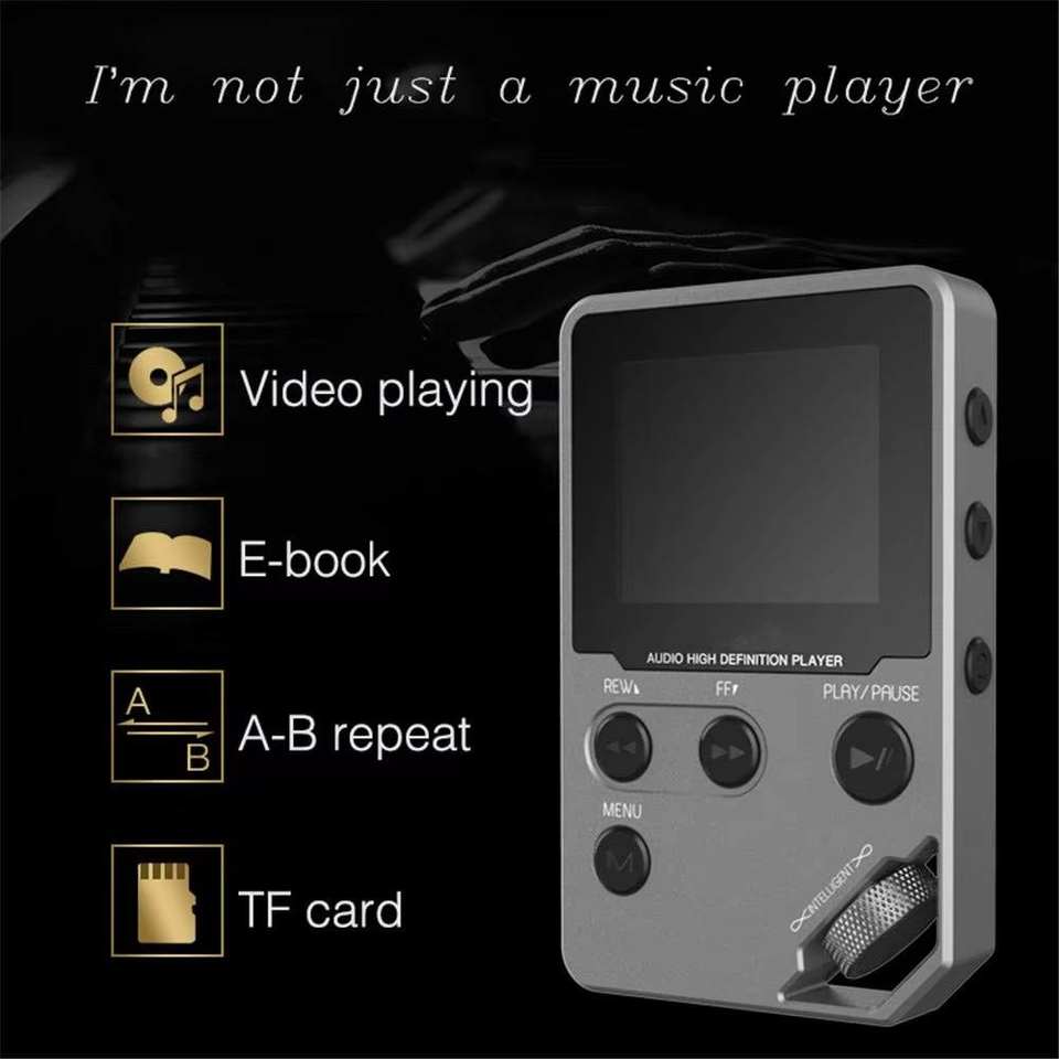 เครื่องเล่น MP3 ไฮไฟแบบไม่สูญเสียคุณภาพเสียง พร้อมระบบ 360 ° ล้อเลื่อนหน้าจอ, ขยายได้ถึง 128GB, ช่องเสียบหูฟังคู่ และวิทยุ FM