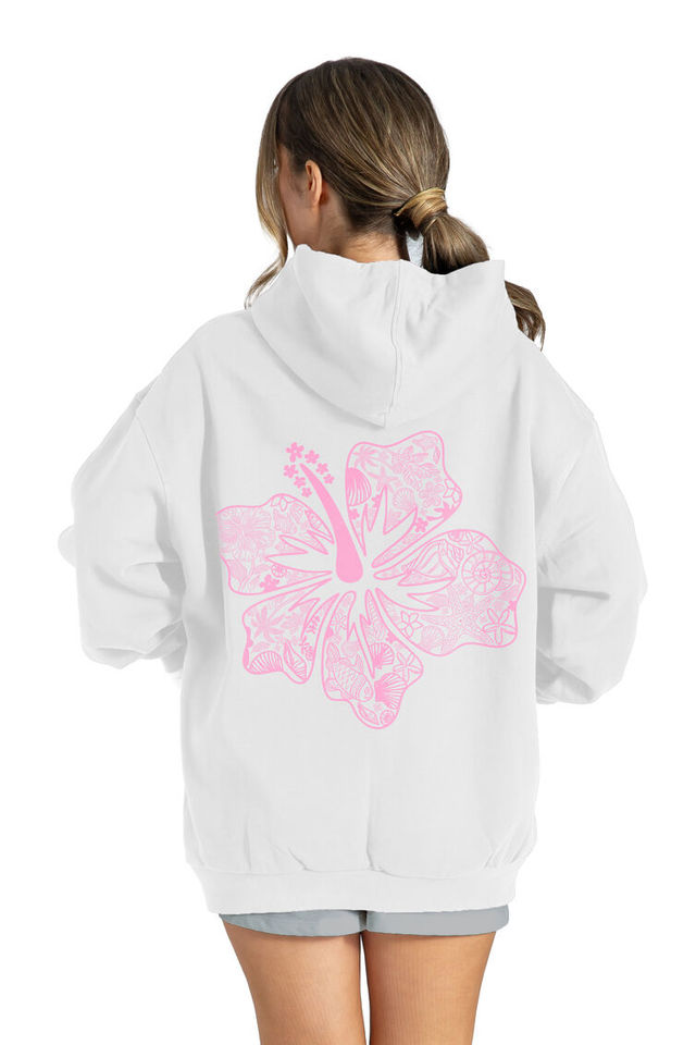 เสื้อกันหนาวมีหมวกลายดอกชบาสำหรับเด็กผู้หญิงและเด็กมีสไตล์และสวมใส่สบาย