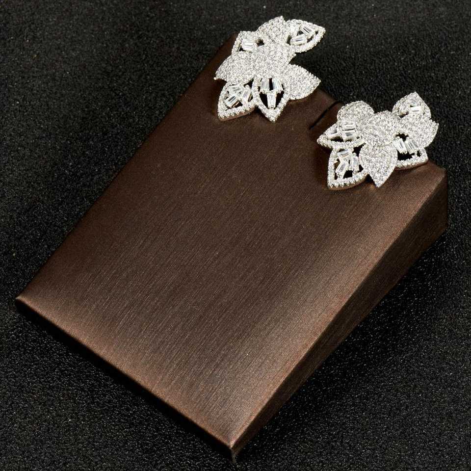 Hibride sparking ลูกบาศก์ Zirconia สีเงินผู้หญิงดอกไม้ใหญ่ต่างหูสำหรับเจ้าสาวเครื่องประดับงานแต่งงานเครื่องประดับ E-976 bihoux