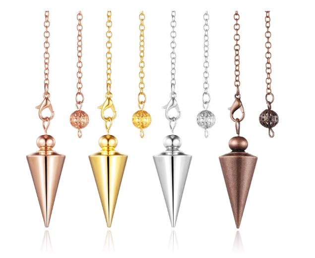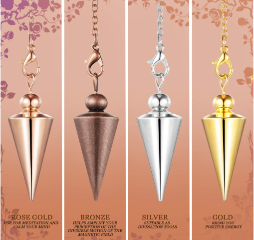 Hicarer 4 Pieces Copper Metal Dowsing Spiritual Point Pendulum Copper Pointed Pendant Pendulum Meditation Sets for Healing