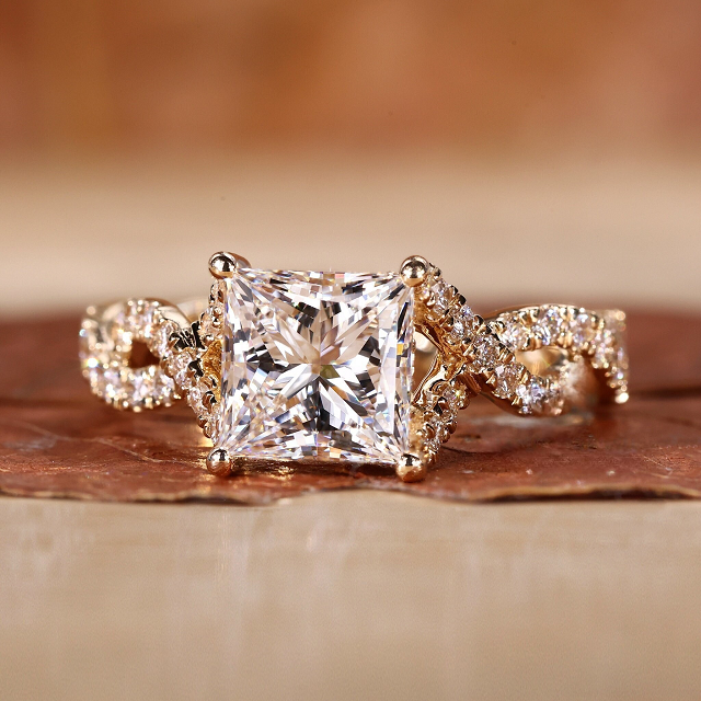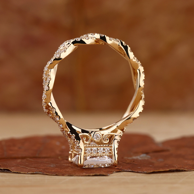 แหวนเพชรทรงเจ้าหญิงแบบซ่อนรูปทรงฮาโล ประดับเพชรแบบพาเว่ 2 ถึง 3 กะรัต เพชรเลี้ยงในห้องปฏิบัติการ แหวนทองคำแท้สีเหลือง
