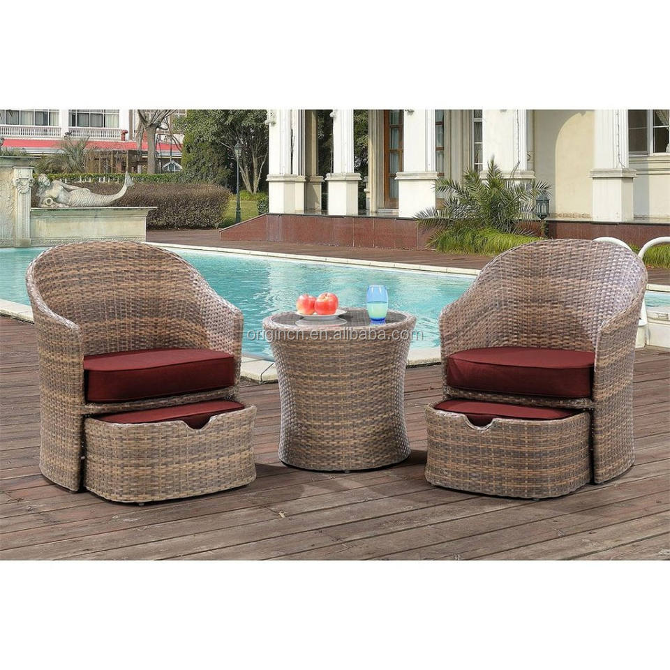 ชุดเก้าอี้พักผ่อนกลางแจ้งแบบมีที่วางเท้าแบบซ่อนได้ ดีไซน์ออตโตมัน วัสดุพลาสติกหวาย