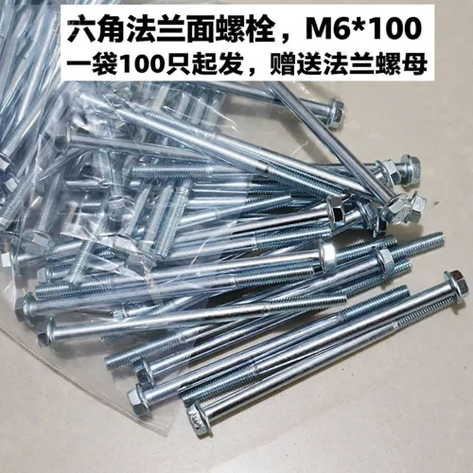 ชุดสกรูหัวหกเหลี่ยมยาวพร้อมหน้าแปลนเหล็กกล้าคาร์บอน M6x10 มม. จำนวน 100 ชิ้น สำหรับยึดฝาครอบท้ายเครื่องกำเนิดไฟฟ้าเบนซินและดีเซล