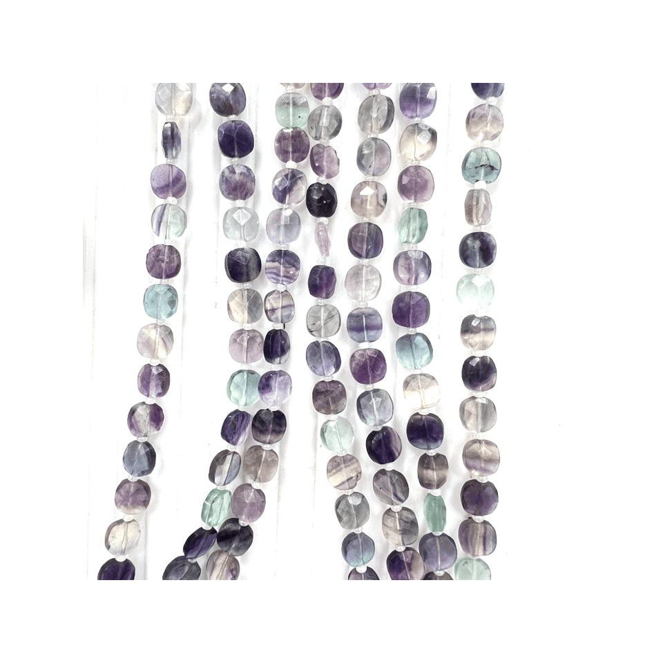 ลูกปัดฟลูออไรต์ธรรมชาติหลายชั้นขนาด17นิ้วรูปทรงกลมขนาดประมาณ6มม. วัสดุหินพรีเมี่ยมสำหรับทำเครื่องประดับ
