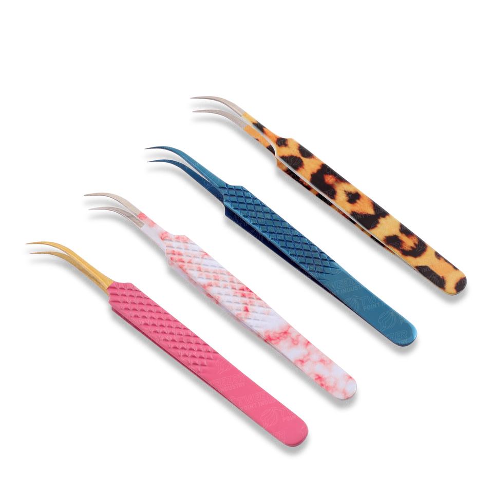 อุปกรณ์เสริมความงามด้ามจับเพชรความแม่นยำสูงปลายโค้งขนตาแหนบน้ำหนักเบาออกแบบโลโก้ได้ตามต้องการ