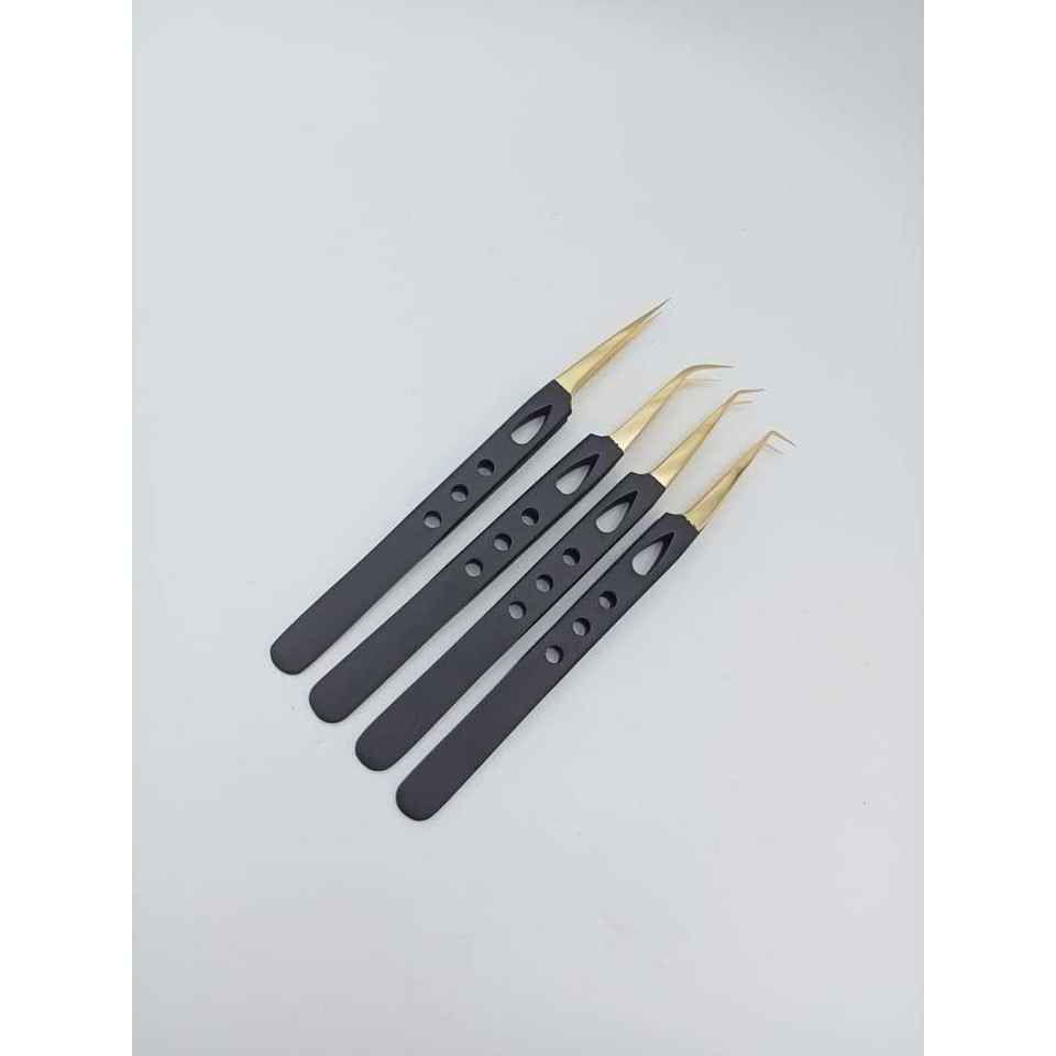 แหนบเคลือบทองความแม่นยำสูง ปลายเรียบลื่น สำหรับเทคนิคต่อขนตาขั้นสูง