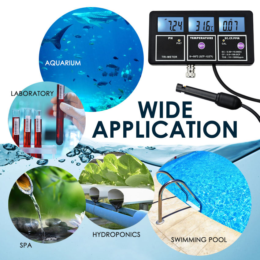 เครื่องวัดค่าหลายพารามิเตอร์แบบดิจิตอล ความแม่นยำสูง วัดค่า pH EC CF TDS อุณหภูมิ ติดผนัง พร้อมไฟแบ็คไลท์ สำหรับตู้ปลา สระว่ายน้ำ และตู้เลี้ยงปลา