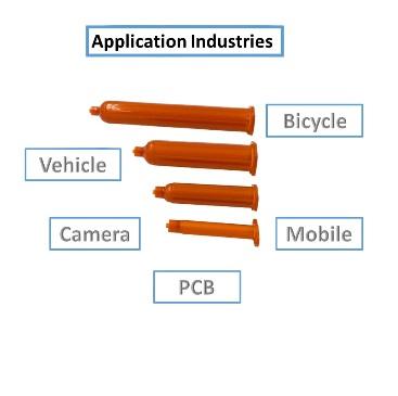 กระบอกฉีดยาความแม่นยำสูง ผลิตในสหรัฐอเมริกา ขนาด 3 ซีซี สำหรับการผลิตกาว ป้องกันรังสียูวี สีเหลืองอำพัน เส้นผ่านศูนย์กลาง 16 มม. ยี่ห้อ Nordson