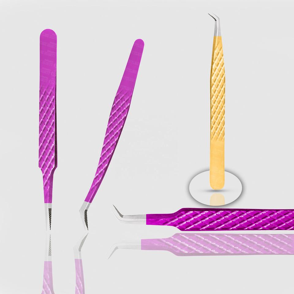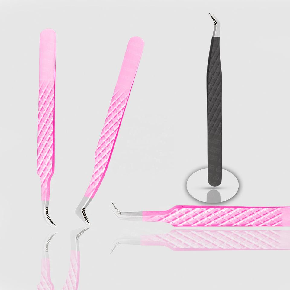 แหนบต่อขนตาปลอมพร้อมปลายแหลมเคลือบผงฝุ่นสีเงินปลายแหลมดีไซน์ตามสั่งมีความแม่นยำสูง