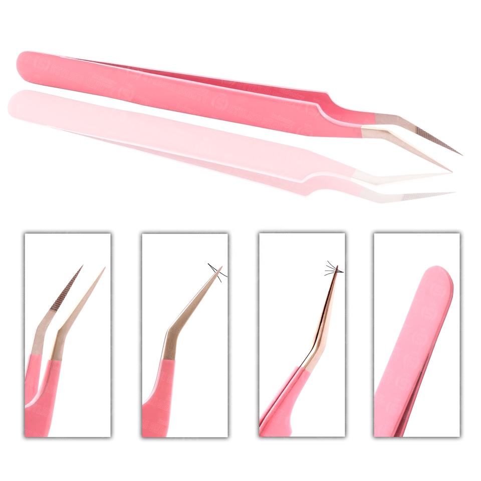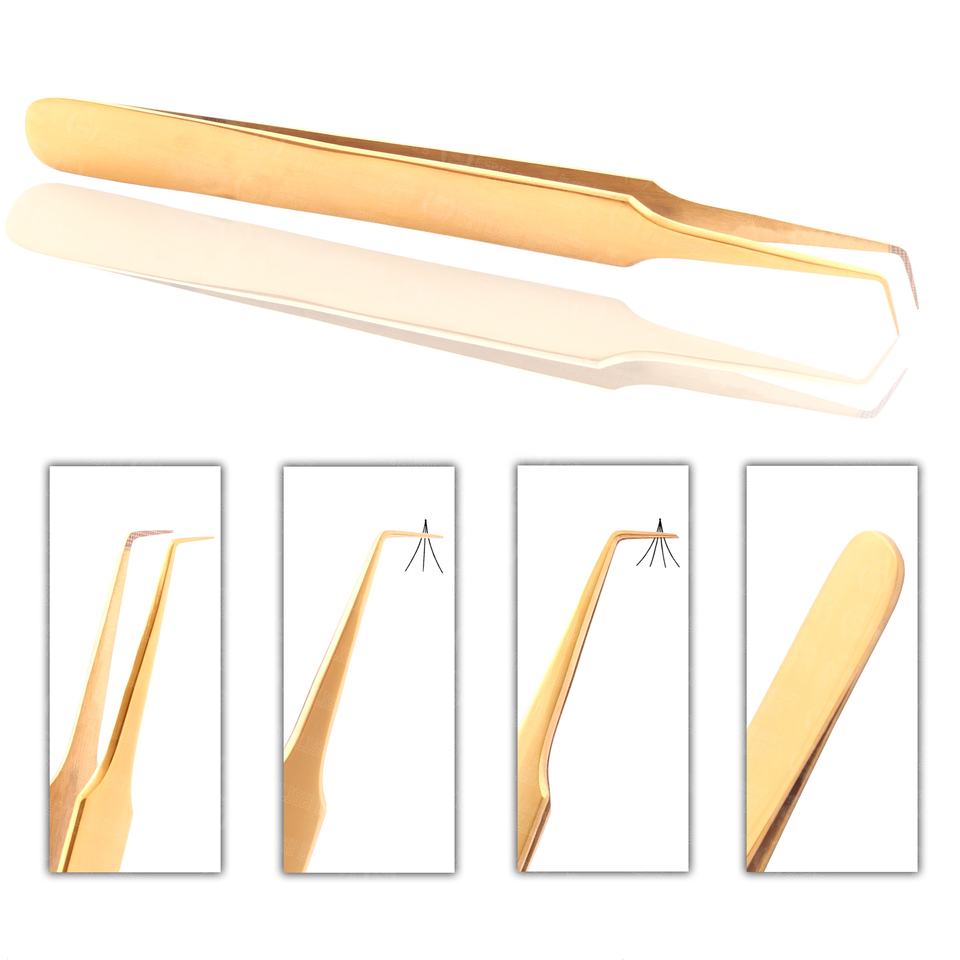 แหนบต่อขนตาแบบสแตนเลส45องศาปลายงอเป็นเส้นใยสีโรสโกลด์ฉลากตามแบบคุณภาพสูง