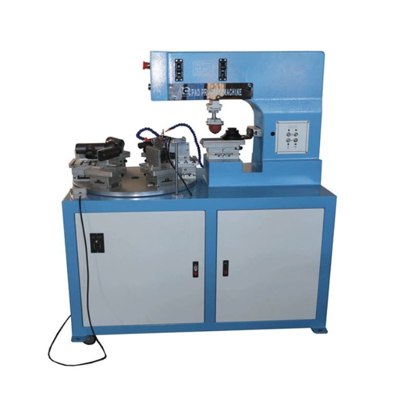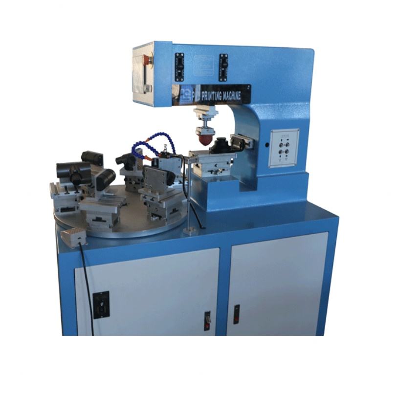 เครื่องพิมพ์แพดแบบถ้วยหมึกสีเดียวความแม่นยำสูง 4 สถานี พร้อมโต๊ะหมุน ใช้แล้ว พร้อมปั๊ม เครื่องยนต์ ท่อ และอุปกรณ์พิมพ์ฉลาก