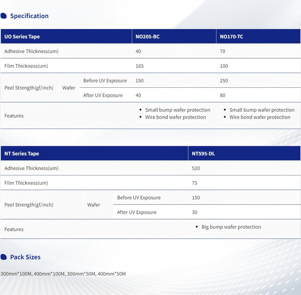 หมายเลขรุ่น:Wafer Back-Grinding Tape NO205-BC 12"